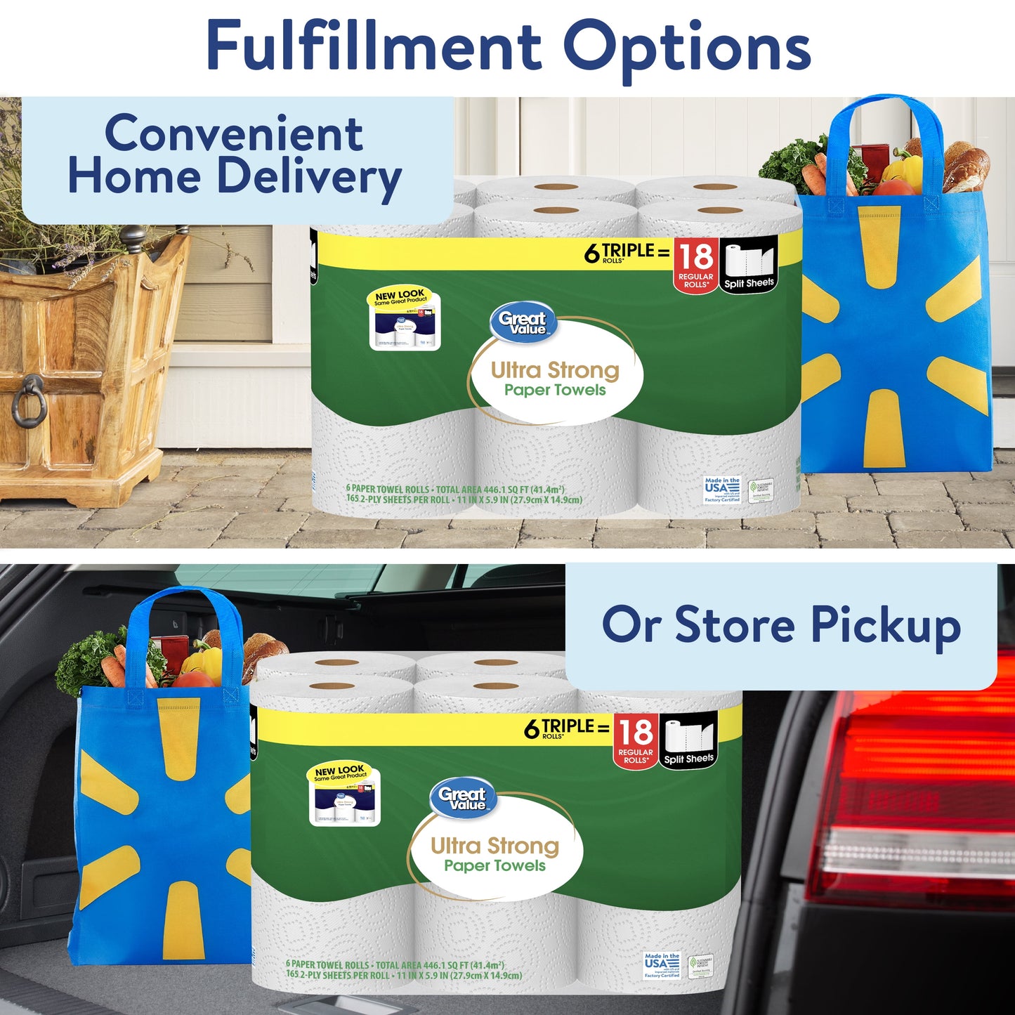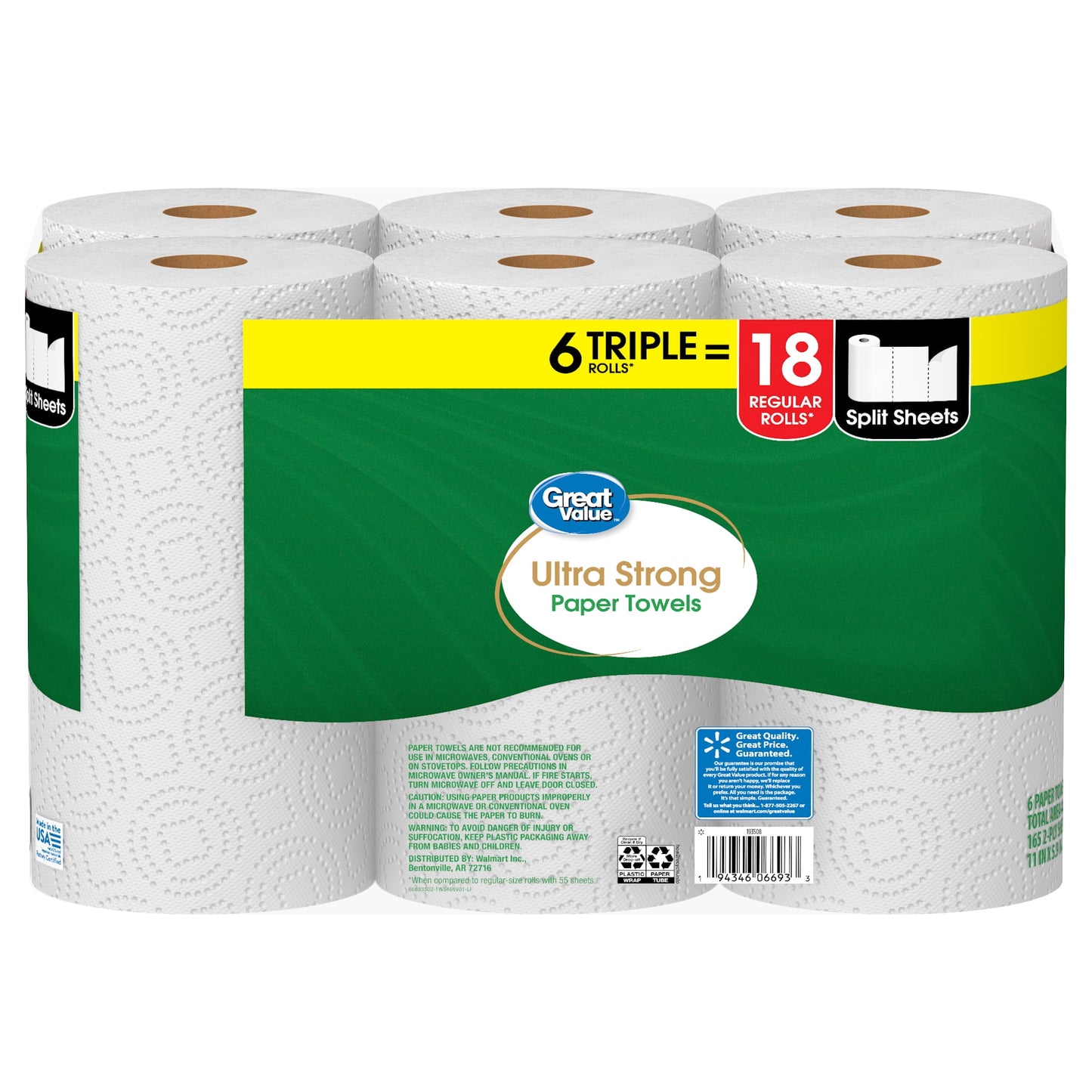 - Great Value Ultra Strong Paper Towels, White, 6 Triple Rolls