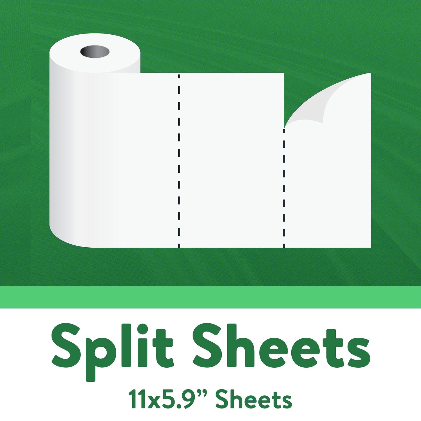- Each roll features 165 split size sheets, our largest roll size, which gives you two size options for cleaning various messes