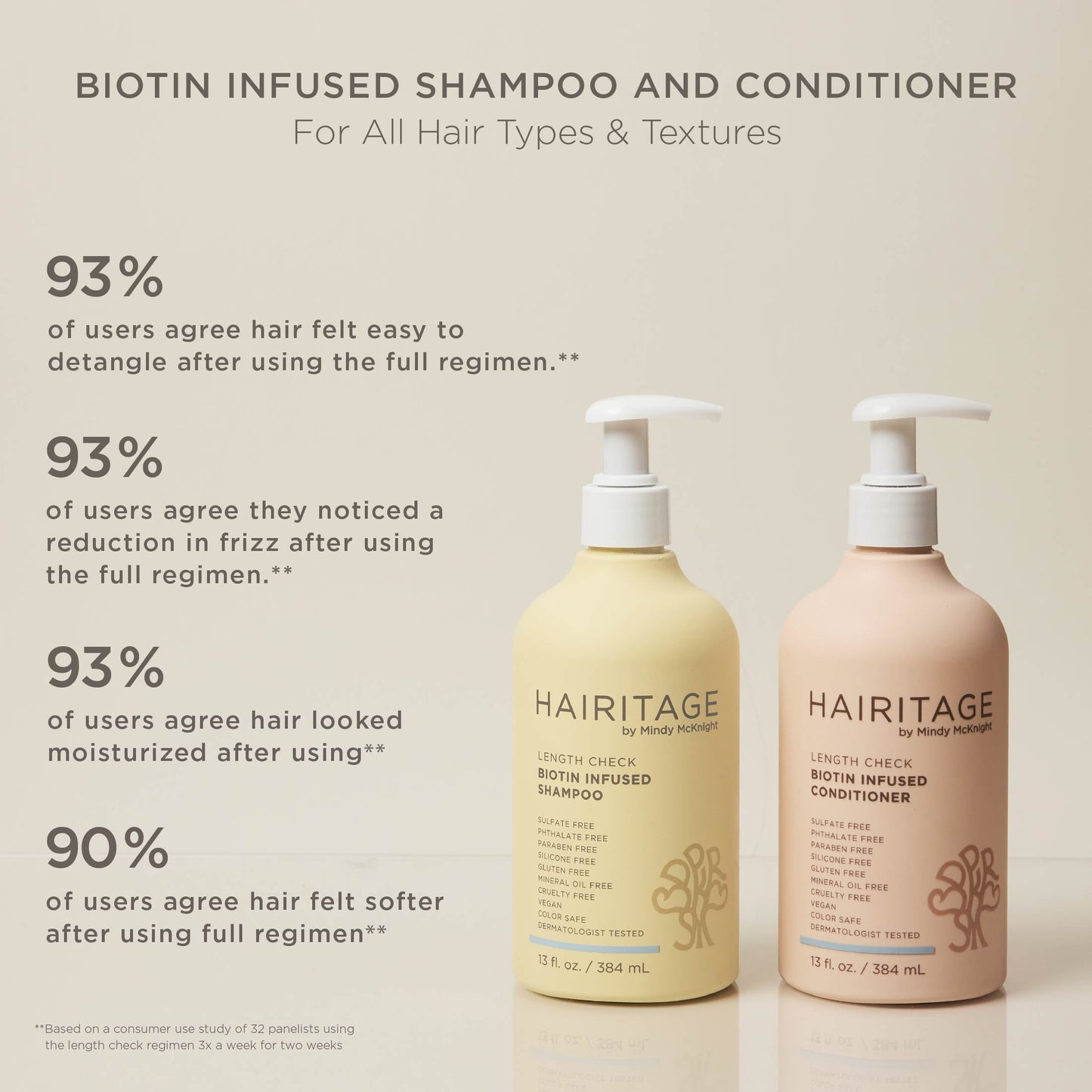Hairitage Biotin & Castor Oil Moisturizing Shampoo and Conditioner for Hair Growth + Volume, Dry Damaged Hair, 13oz