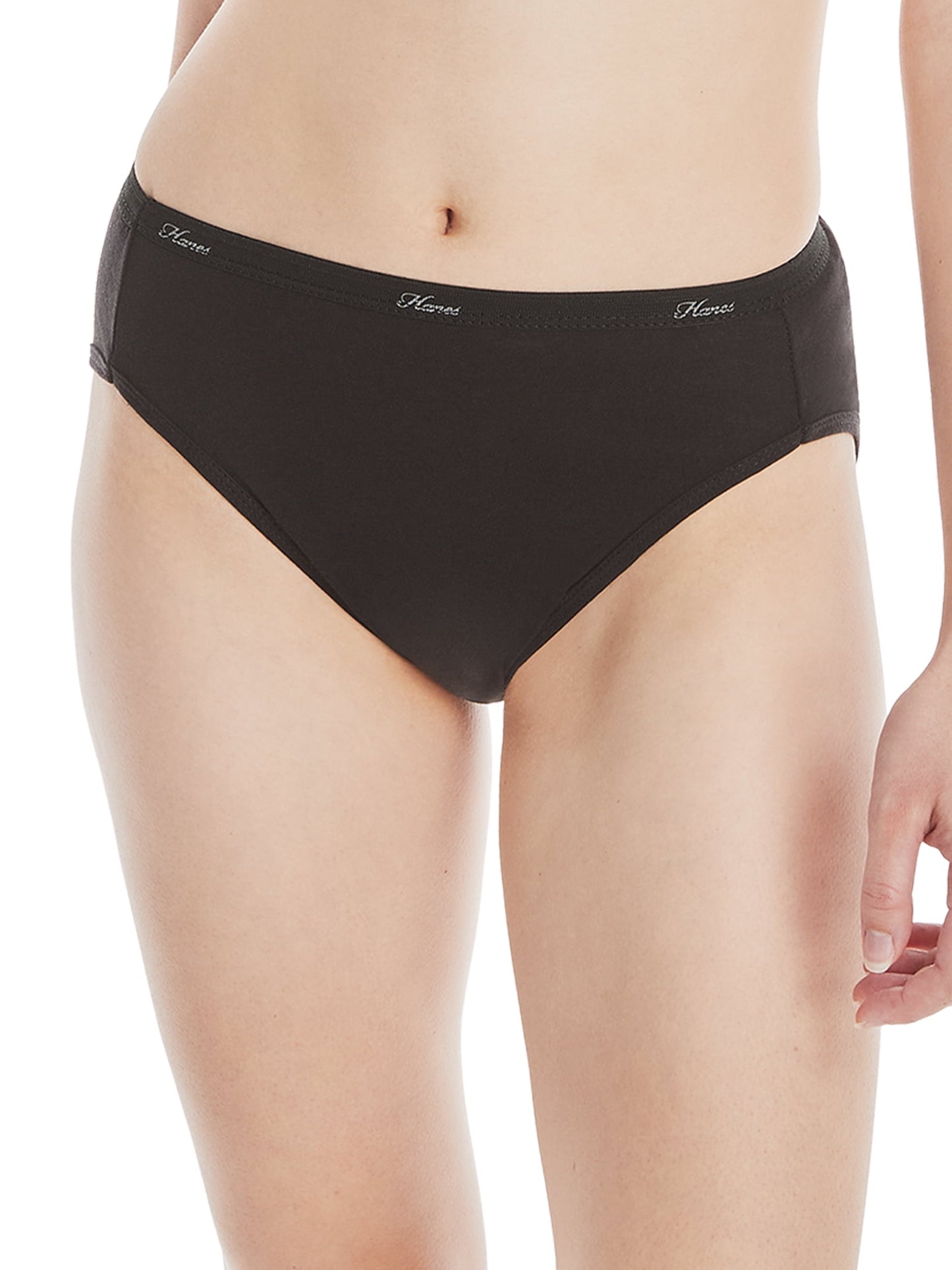 When you need to stock up on the best cotton hi-cuts you can find, trust the experts at Hanes®. These better-than-basic high-cut panties are made with Cool Comfort® fabric that wicks away moisture from your skin to keep you cool all day. The silhouette is just what you want in a leg-flattering underwear, with high-cut legs and a full-coverage back for a sleek, smooth look under clothes. The logo waistband of these moisture-wicking panties is soft, stretchy, and plush for comfort where you need it most. Stock up with this value pack of 10 pairs of hi-cut women's underwear for a style and fit you're sure to love.