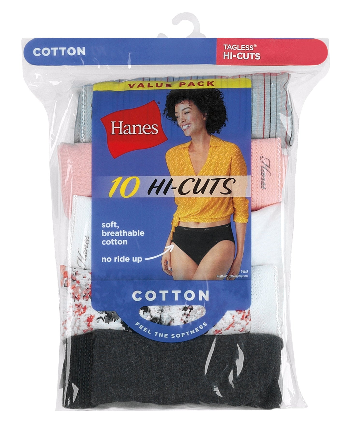 Hanes Womens Underwear 10-Pack, Hi-Cut Panties, Moisture-Wicking Underwear for Women