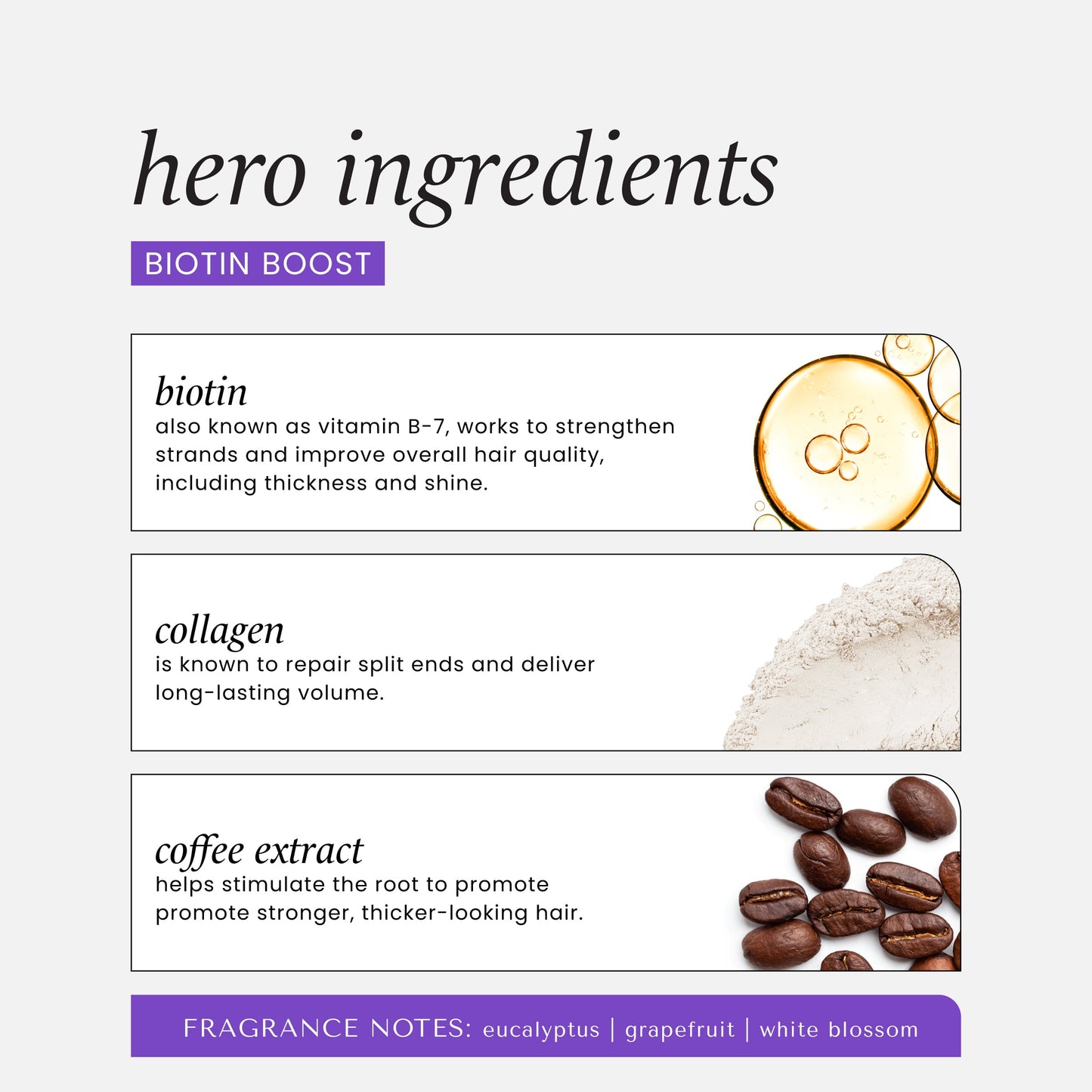 - Coffee Extract helps stimulate the root to promote thicker-looking hair