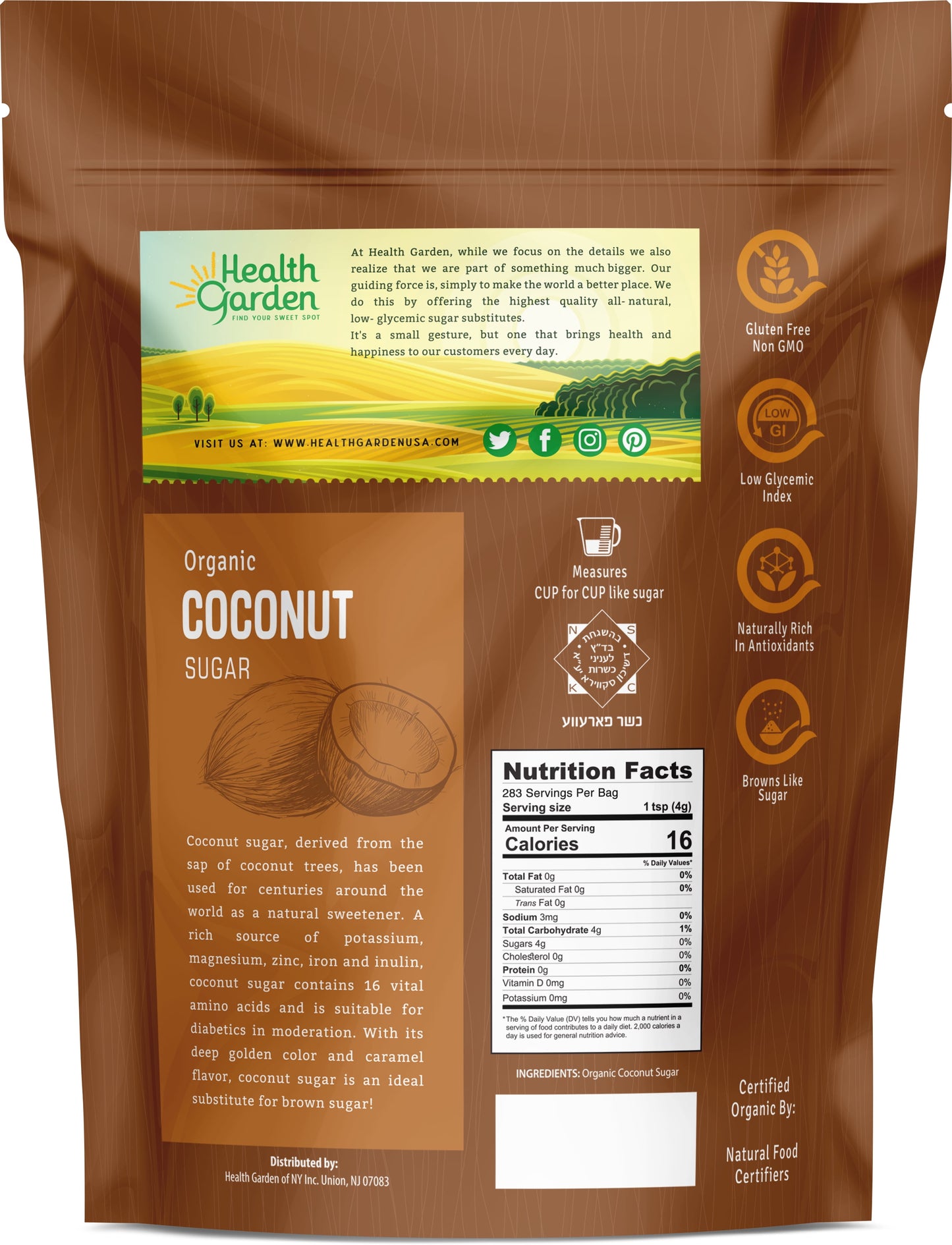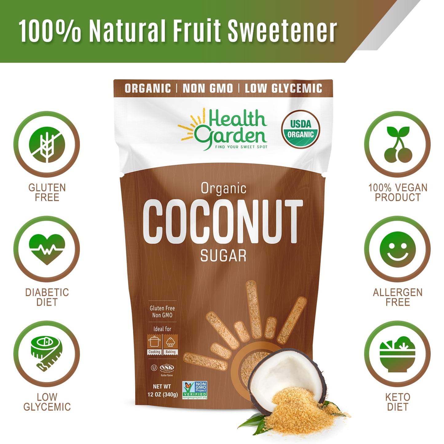 Health Garden Organic Palm Coconut Sugar, 16 oz – Natural Unrefined Sweetener, Low Glycemic & Non-GMO