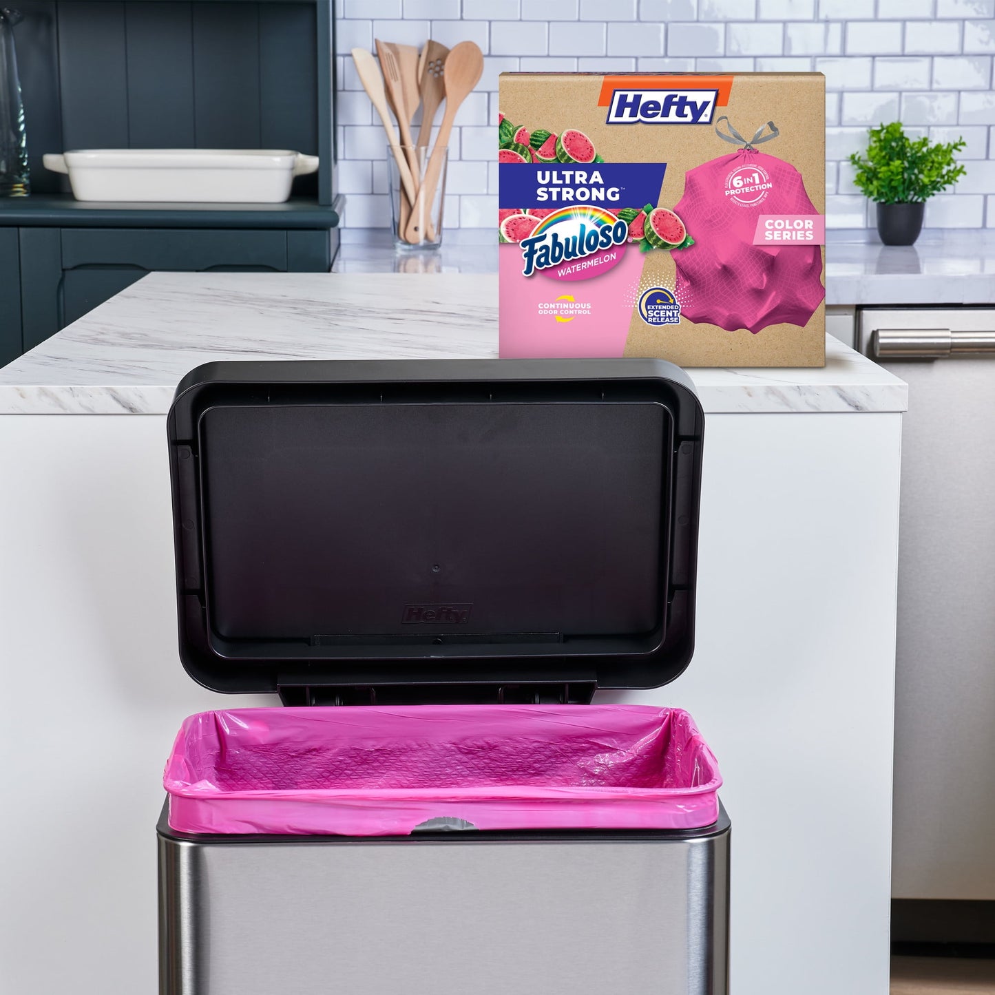 Hefty Ultra Strong 13 Gallon Trash Bags – Tall Kitchen, Pink, Fabuloso Watermelon Scent, 110 Count