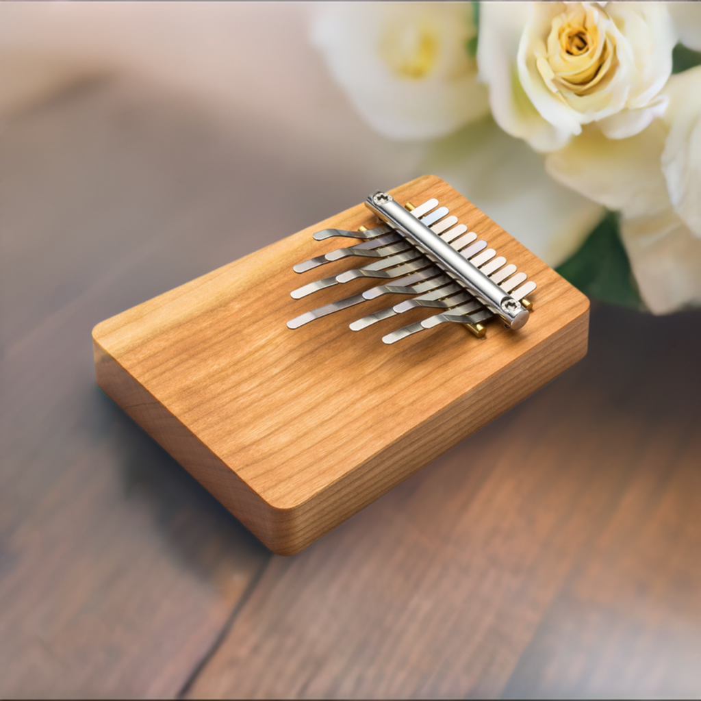 Our Kalimba B11 Melody is meticulously hand-crafted out of solid American black cherry wood. The surfaces is treated and polished with natural oils and waxes. The 11 tines are precisely tuned to the scale of G Major, suitable for playing countless popular tunes. The Melody is ideal for improvisation and intuitive playing.