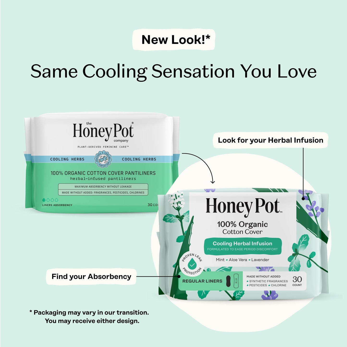 Honey Pot Organic Cotton Regular Liners with Cooling Herbal Infusion – 30 Count