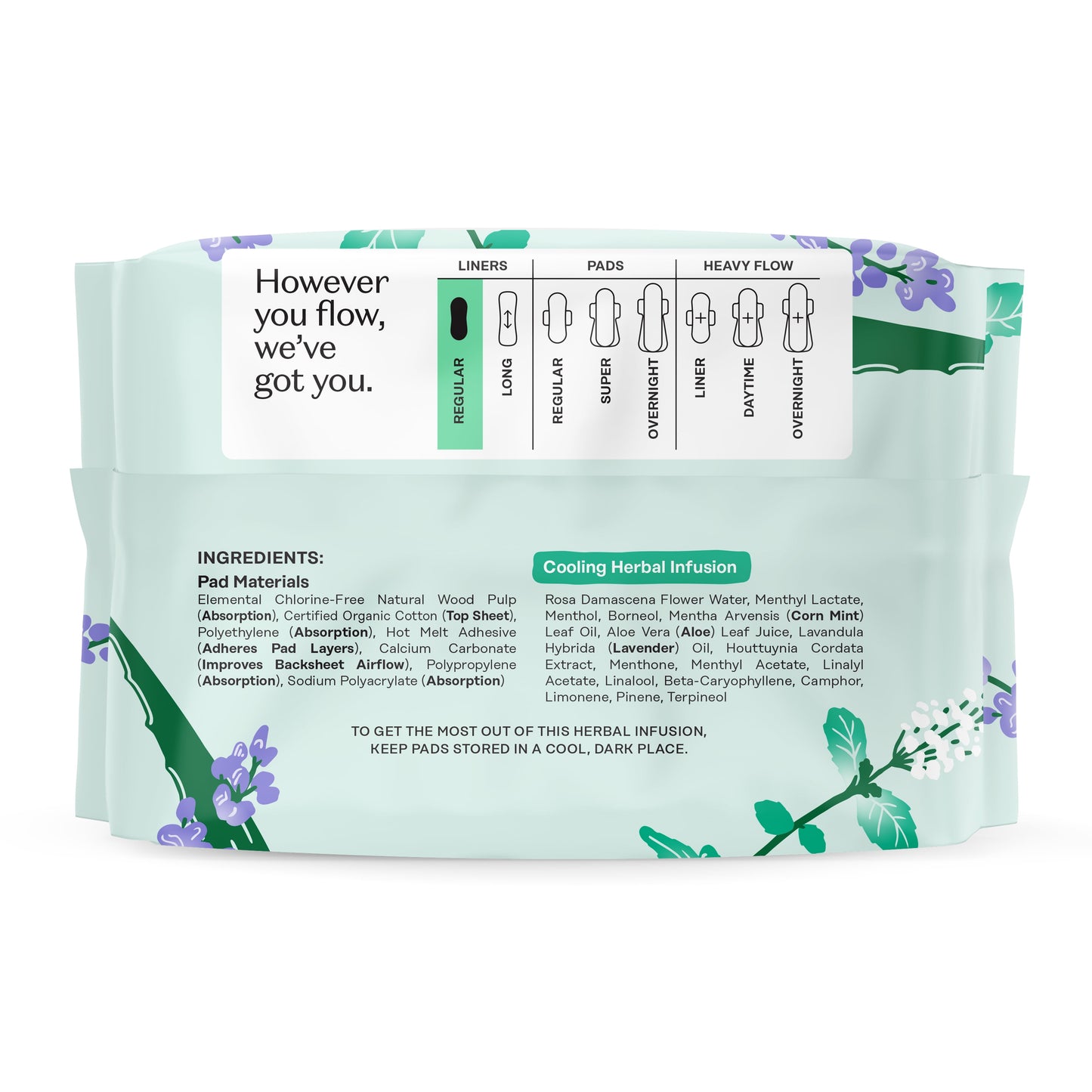 Product Name: 100% Organic Cotton Cover Cooling Herbal Infusion Regular Liners