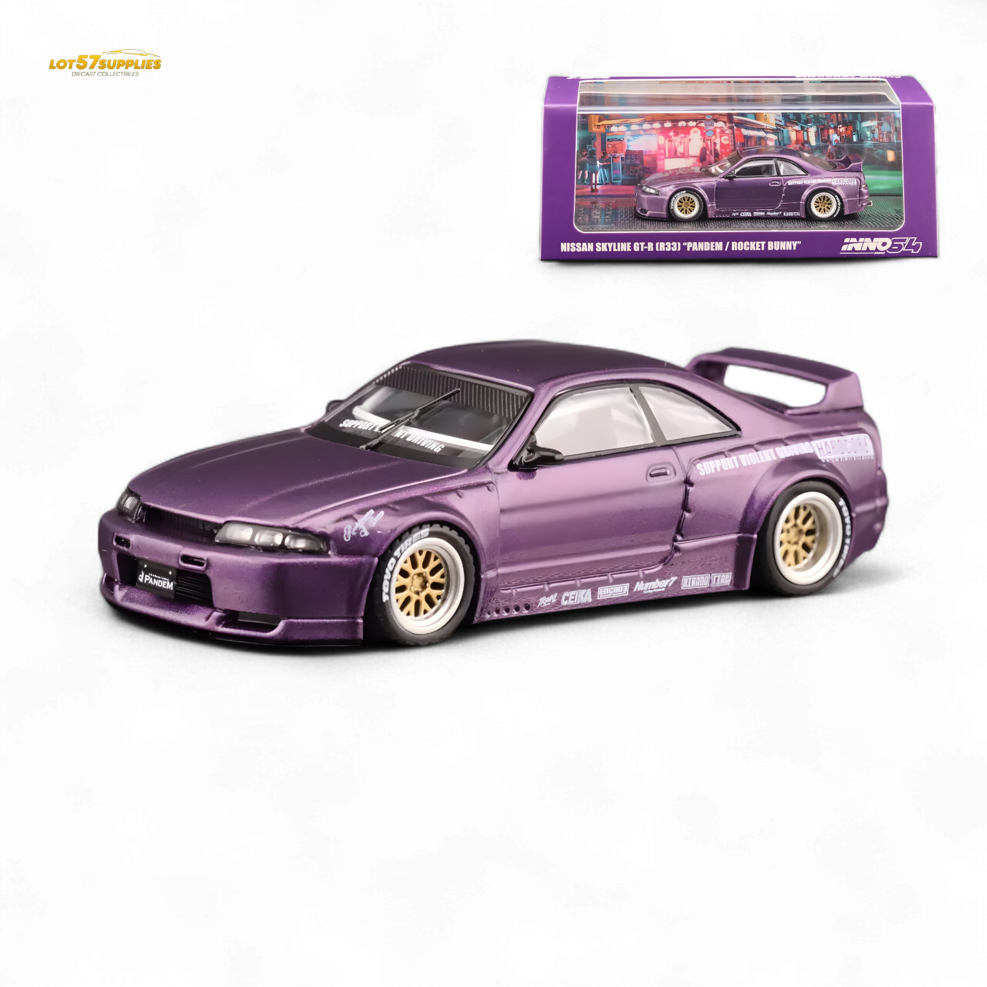 Inno64 NISSAN SKYLINE GT-R (R33) "PANDEM ROCKET BUNNY" Purple 1:64