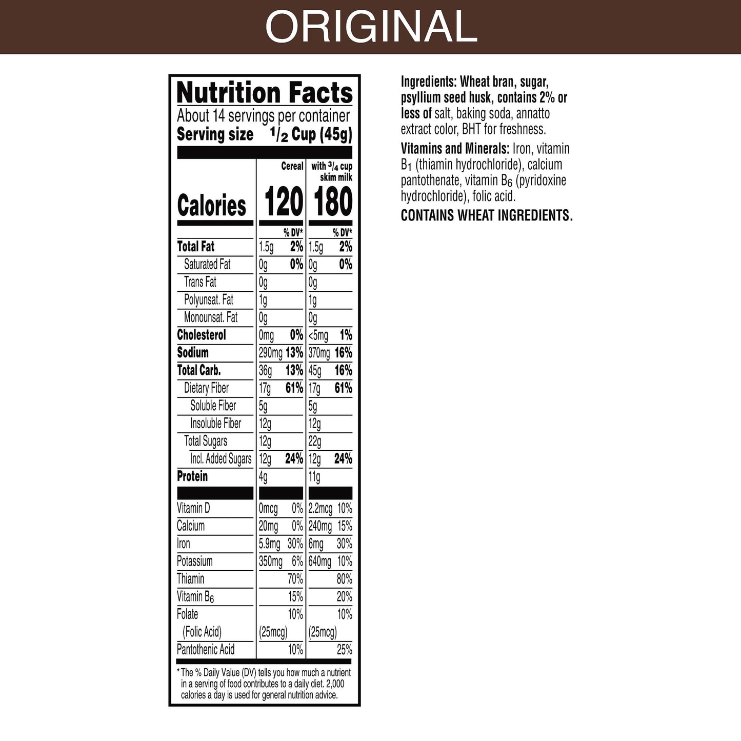 - Crunchy high-fiber cereal made with an inviting blend of wheat bran, and psyllium; A delicious part of any balanced breakfast