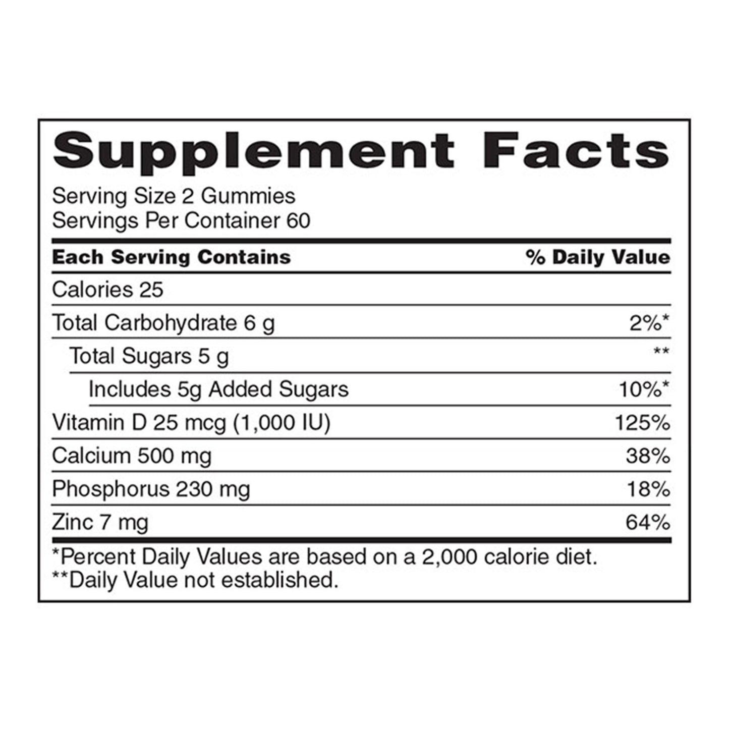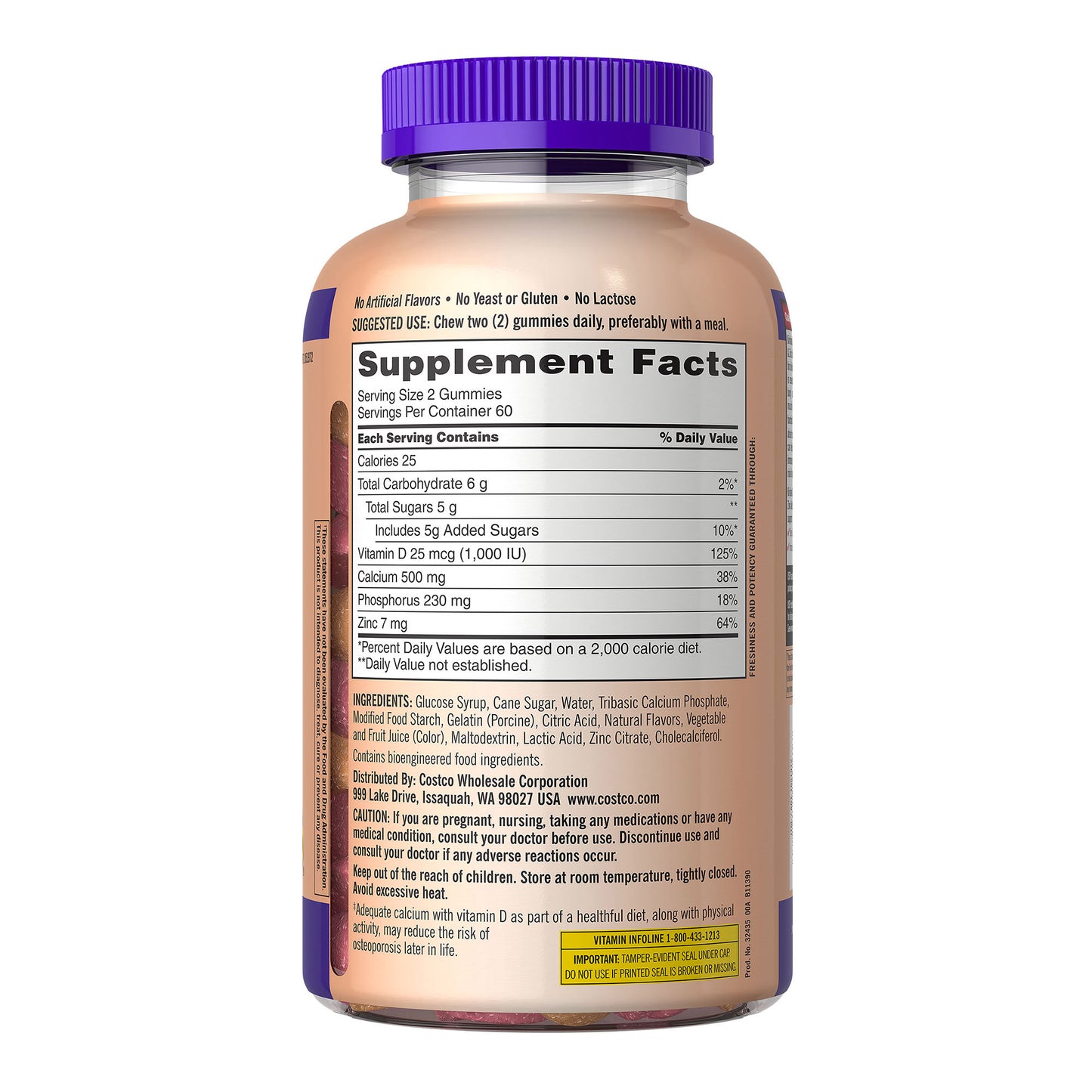 Kirkland Signature Calcium 500 mg + D3 & Zinc – 240 Adult Gummies for Bone & Immune Health