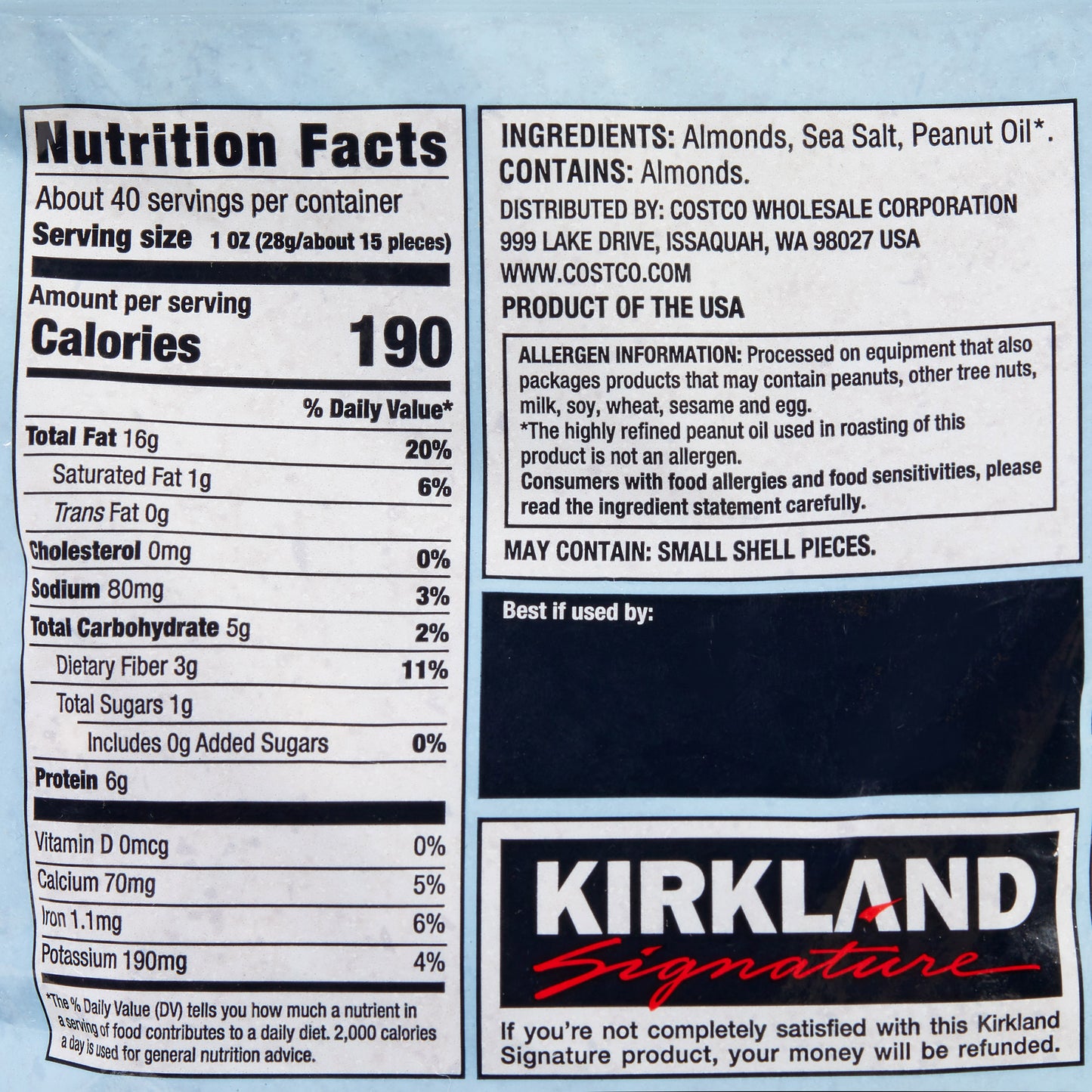 Kirkland Signature Roasted Almonds with Sea Salt, 2.5 lbs | Premium Healthy Snack