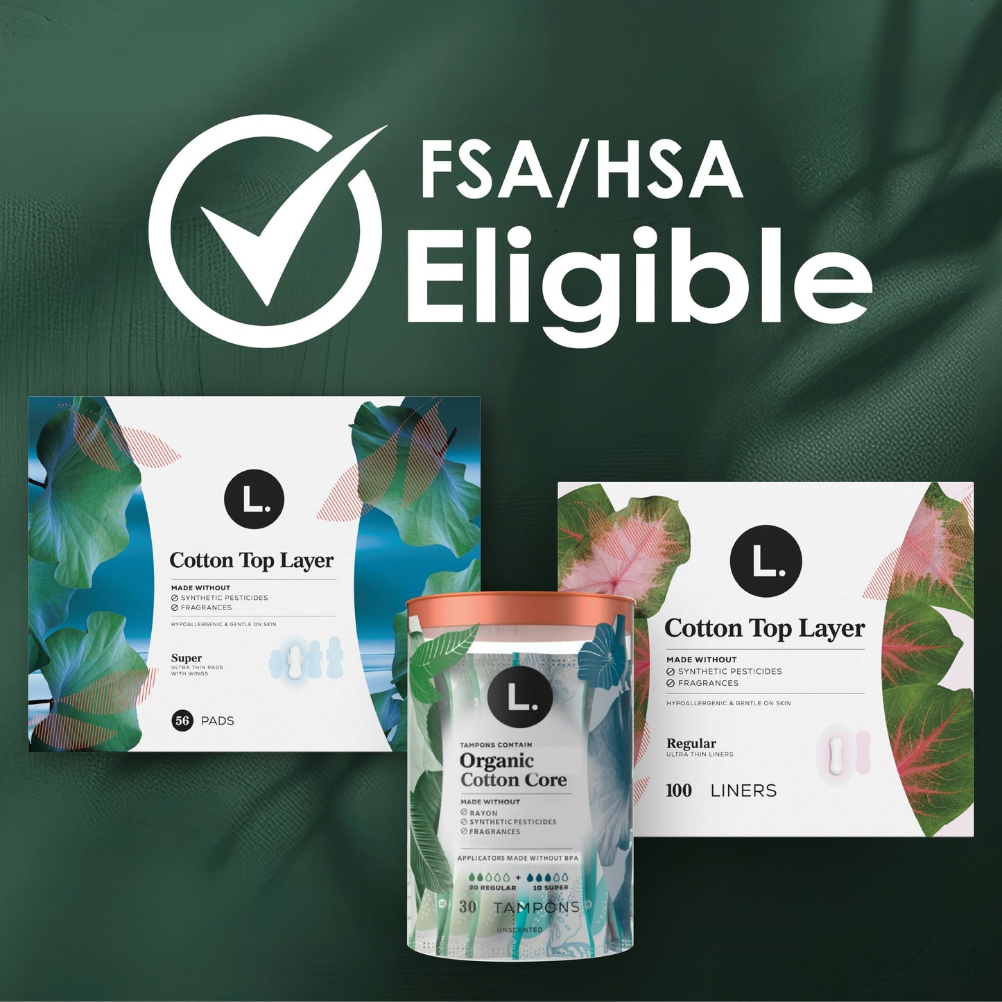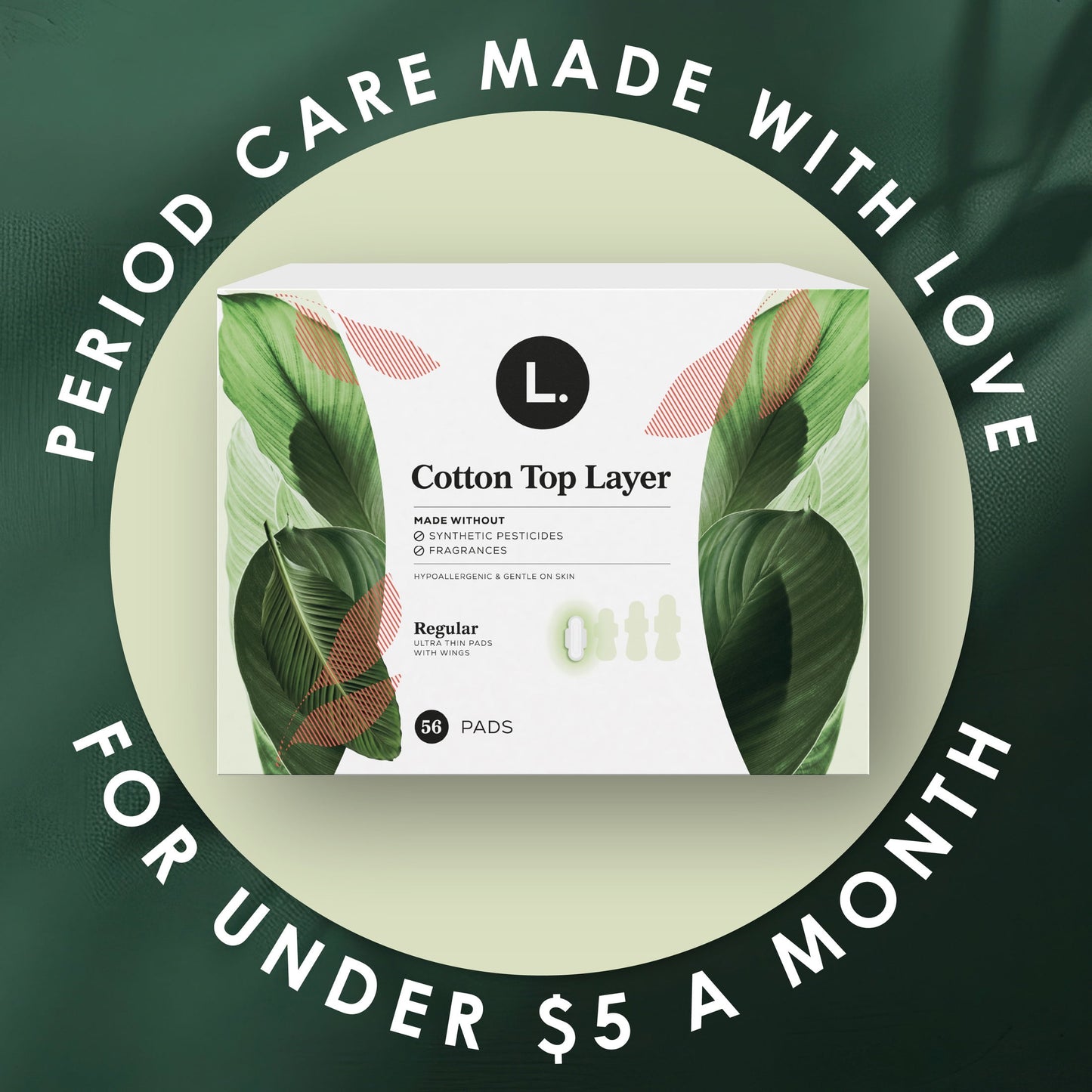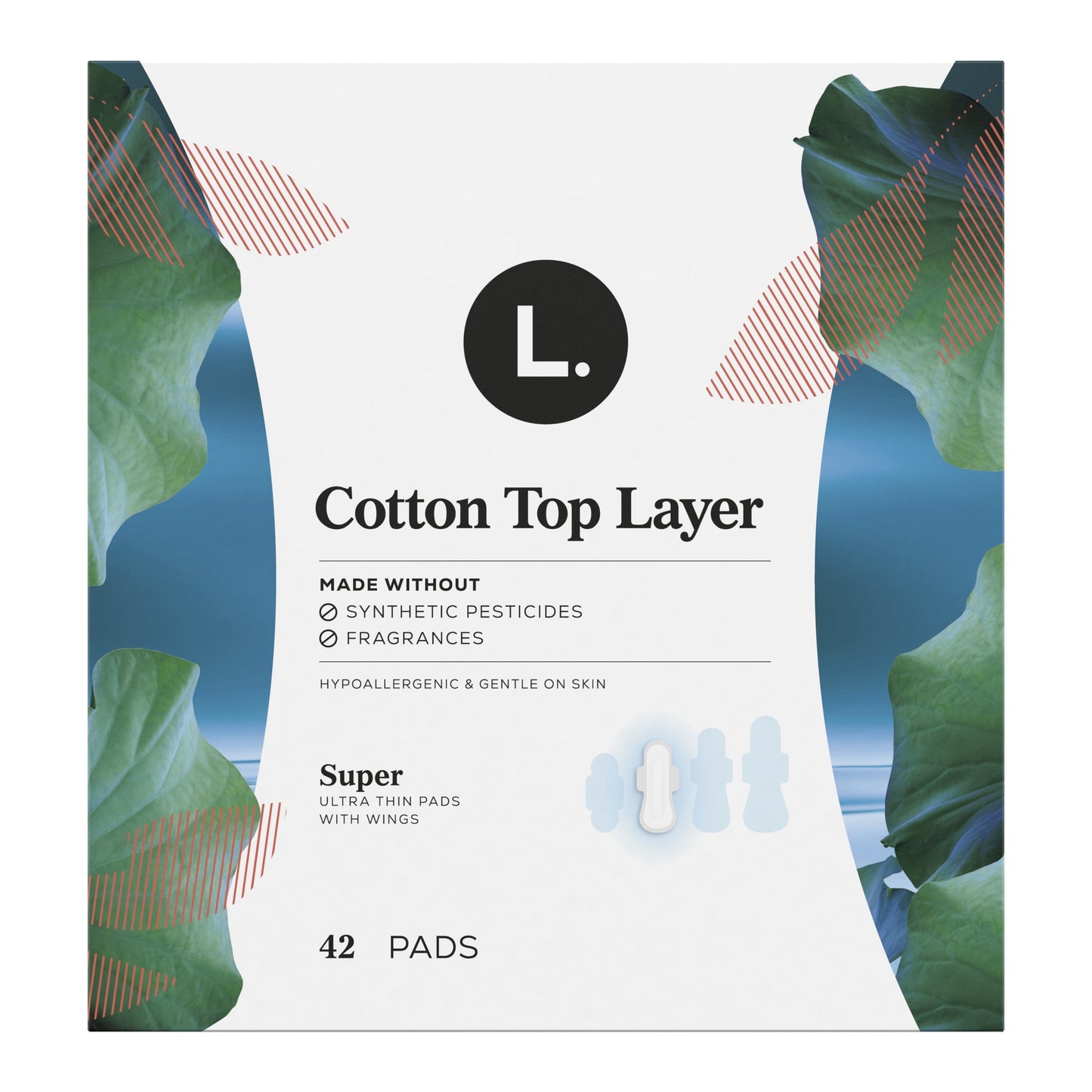 Stay confident during heavy flow days with L. Ultra Thin Pads for Women, Super Absorbency, Unscented (42 Count). Made with a 100% organic cotton top layer, these pads are soft, breathable, and gentle on sensitive skin. Designed with super absorbency for dependable leak protection, the ultra-thin style and secure wings provide a comfortable and flexible fit that moves with you. Free from fragrances, dyes, and chlorine bleaching, L. pads deliver safe, eco-conscious period care you can rely on without compromising comfort.