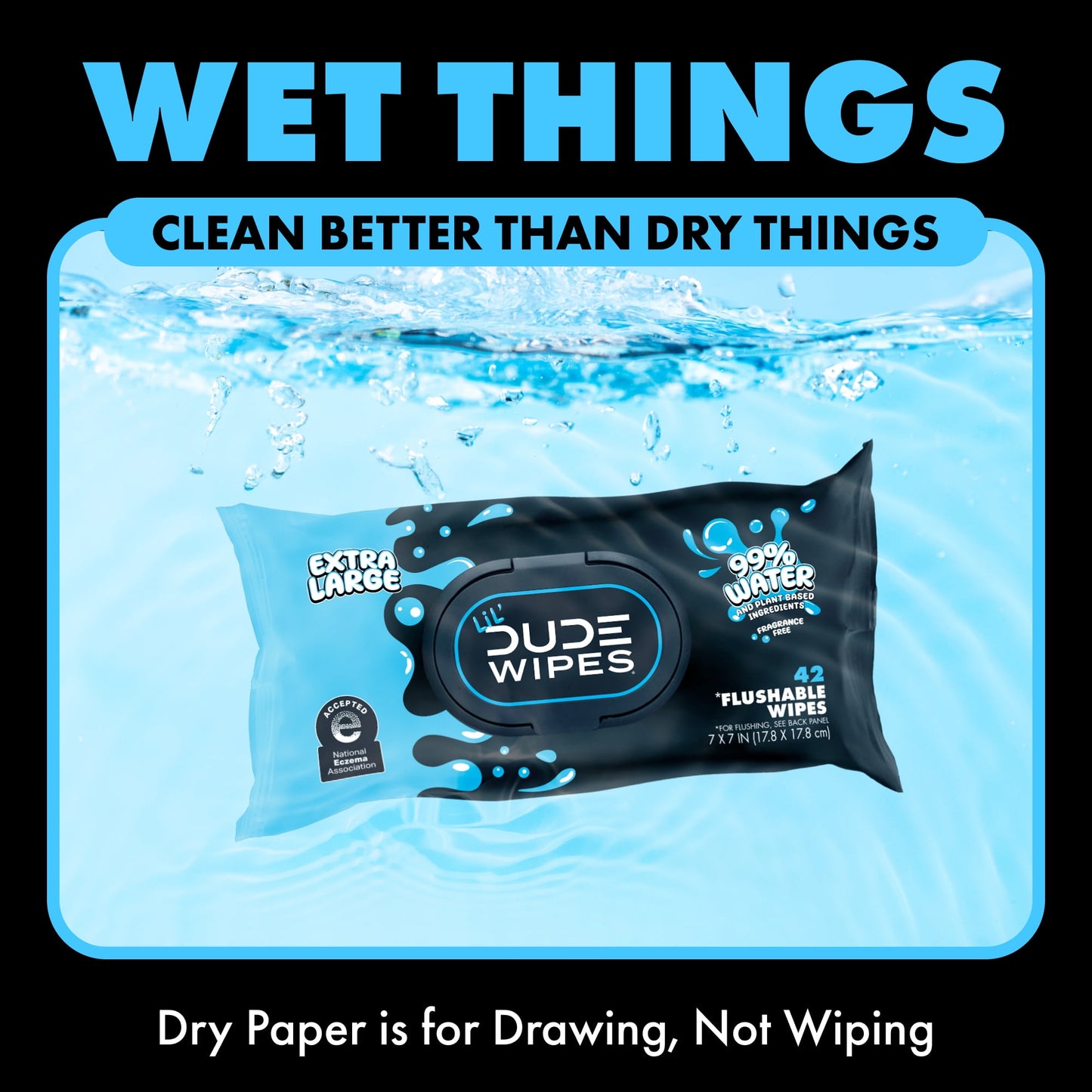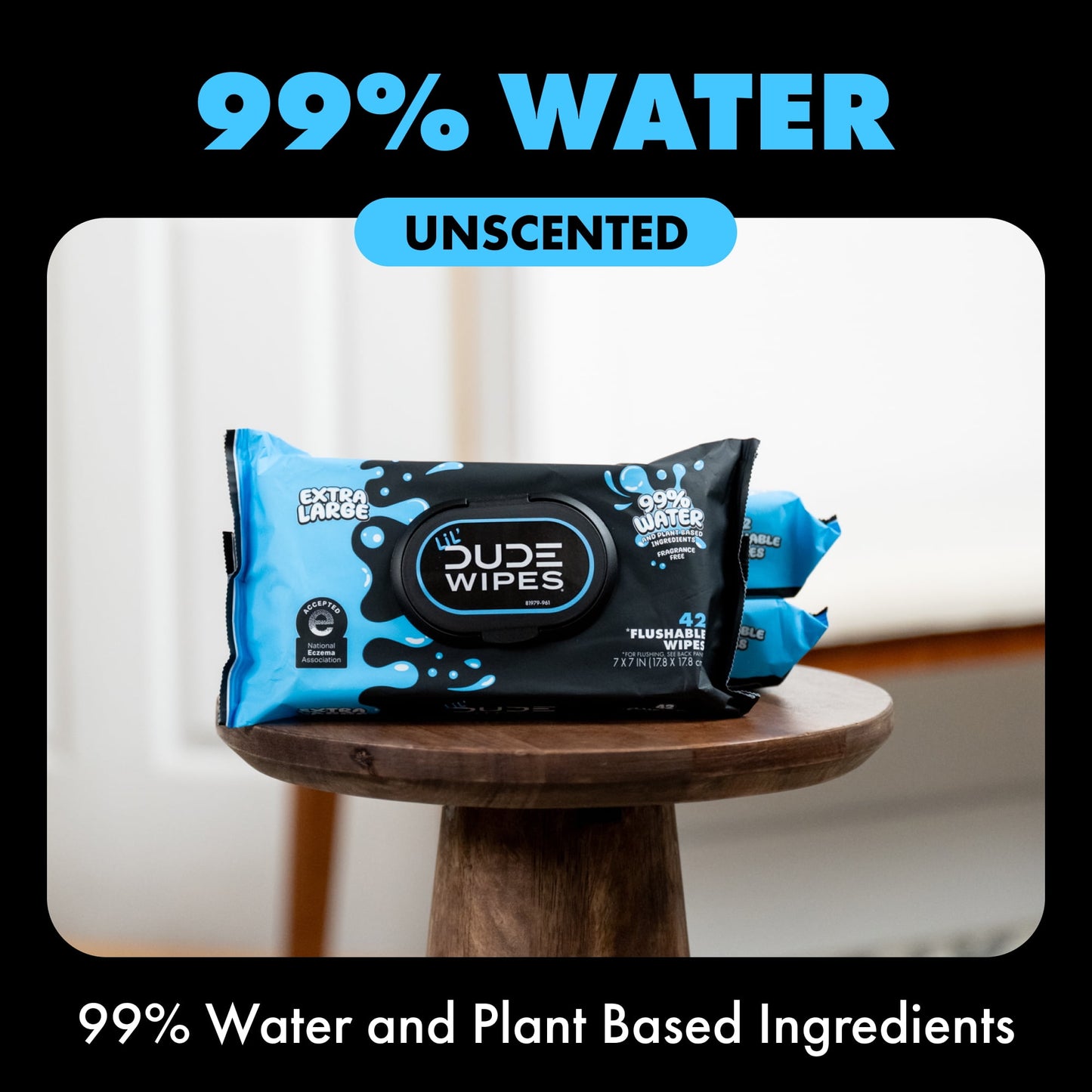 Keep your kids clean and fresh with LiL' DUDE Extra Large Flushable Wet Wipes. Made with 99% water and fragrance-free, these wipes are gentle on sensitive skin while offering effective cleaning for everyday messes.