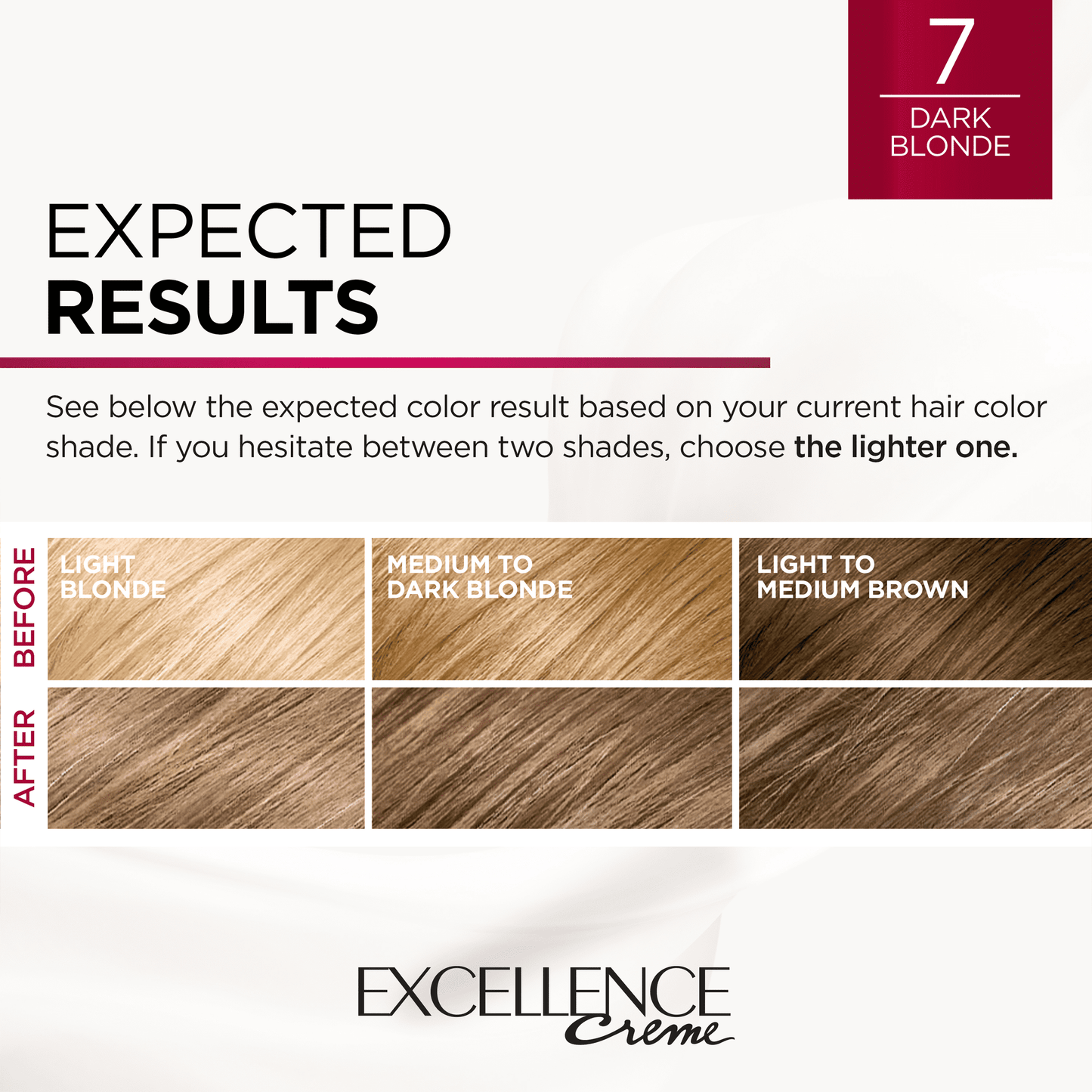 - L'Oreal Paris Excellence Creme Permanent Hair Color, 7 Dark Blonde, 1 kit