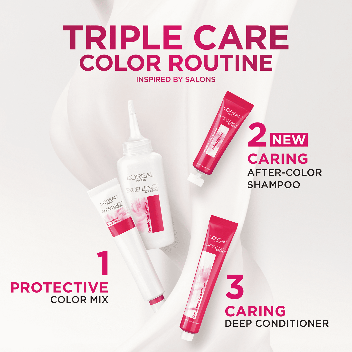 L'Oreal Paris Excellence Creme Permanent Triple Care Hair Color gives you rich, radiant color. The color creme is formulated with Pro-Keratine complex that protects as it colors. Excellence delivers 100% gray coverage even on the most stubborn grays. The new salon inspired after color care shampoo is enriched with Glycerin to delicately cleanse the scalp and hair of excess residue. It smoothes the hair to reveal rich, radiant color. The dispenser style for this product is ''.