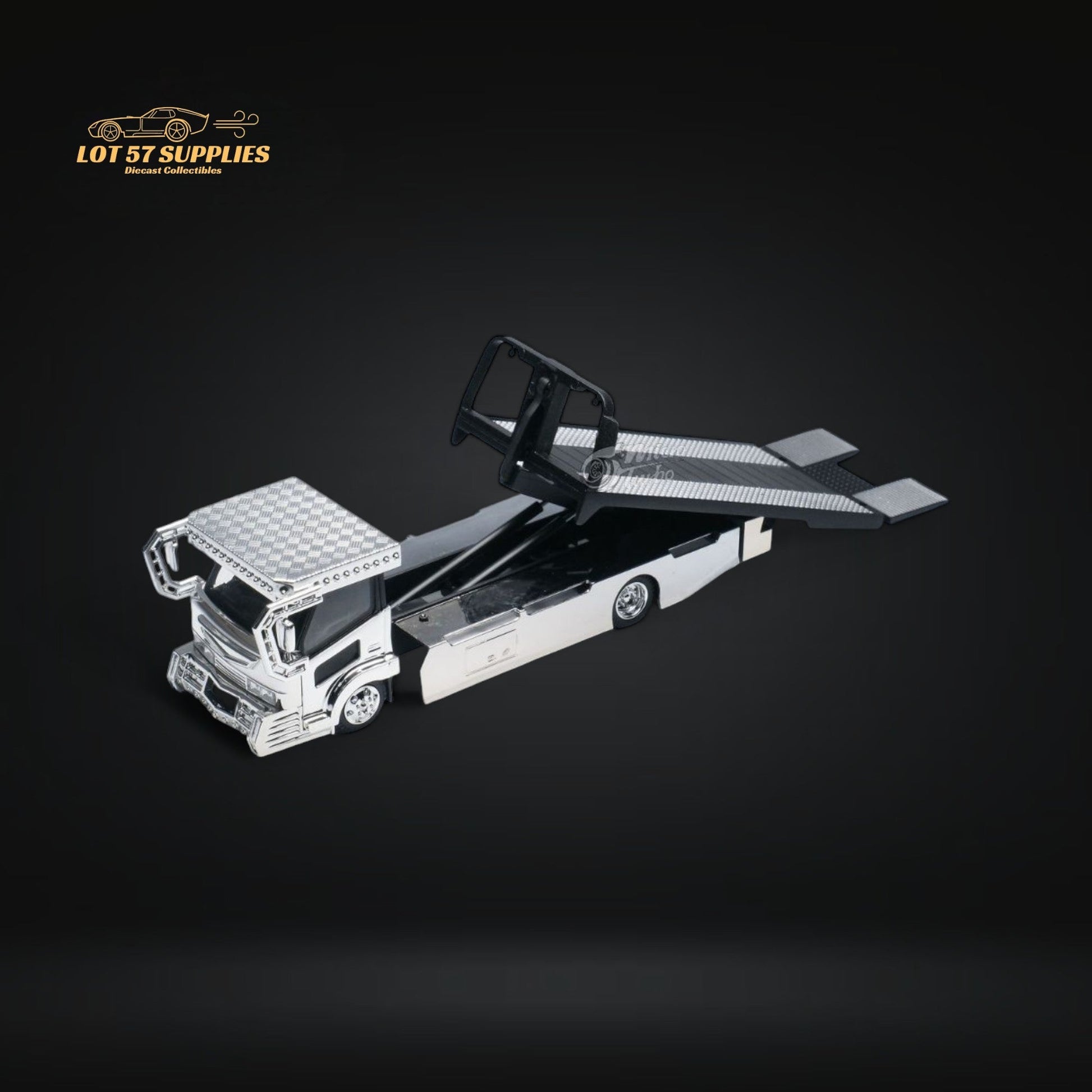 MicroTurbo Dekotora Flatbed Tow Truck With Stickers 1:64