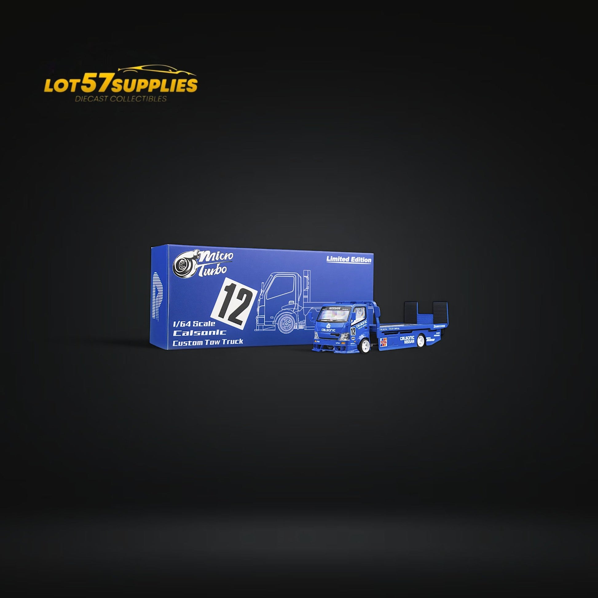 MicroTurbo HINO 300 Custom Truck Flatbed Blue Calsonic Livery 1:64