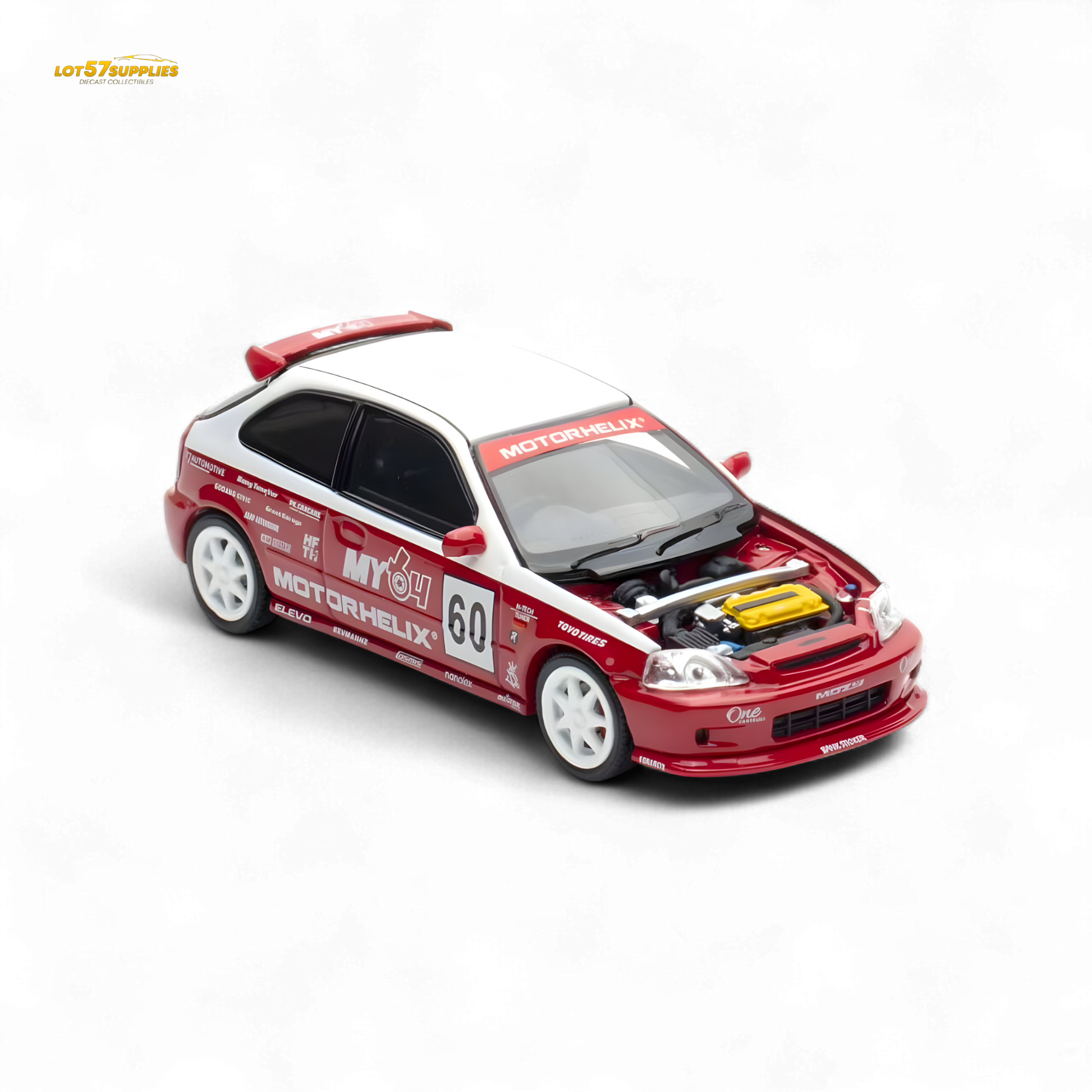 Motorhelix Honda Civic EK9 Malaysia Limited Edition - White - Red 1:64
