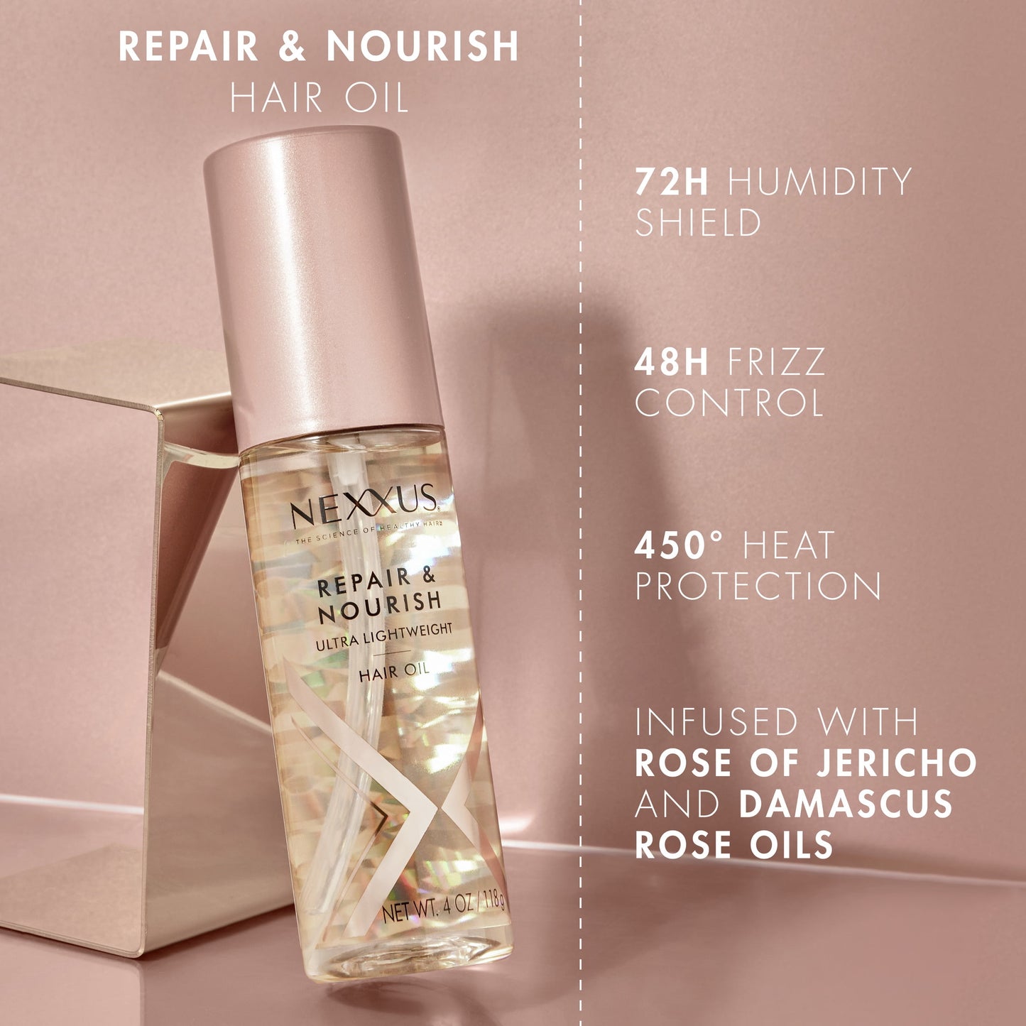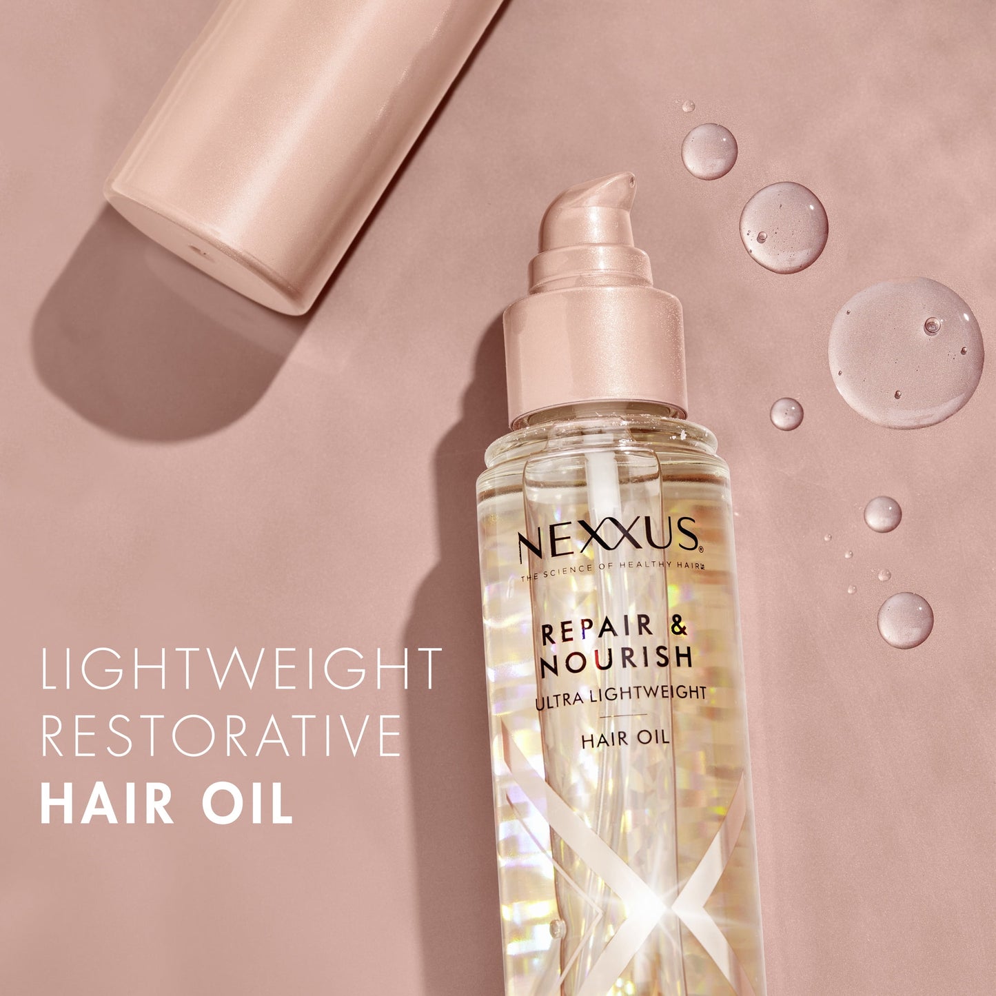 - ULTRA LIGHTWEIGHT HAIR OIL: The Nexxus Repair & Nourish Hair Oil is an intensely nourishing, but ultralight restorative oil designed to coax dry, tired strands back to life.