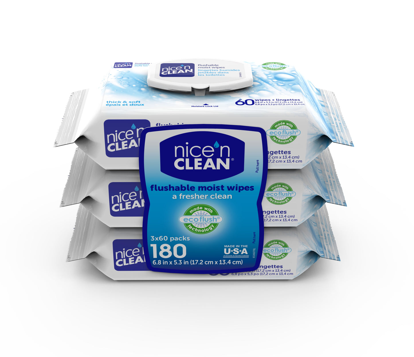 Each pack features a flip-top lid for easy, one-handed access and helps maintain moisture. These wipes are biodegradable and flushable, making them a sustainable choice for families who care about the environment. With 3 convenient packs totaling 180 wipes, Nice N Clean keeps you and your loved ones fresh anytime, anywhere.