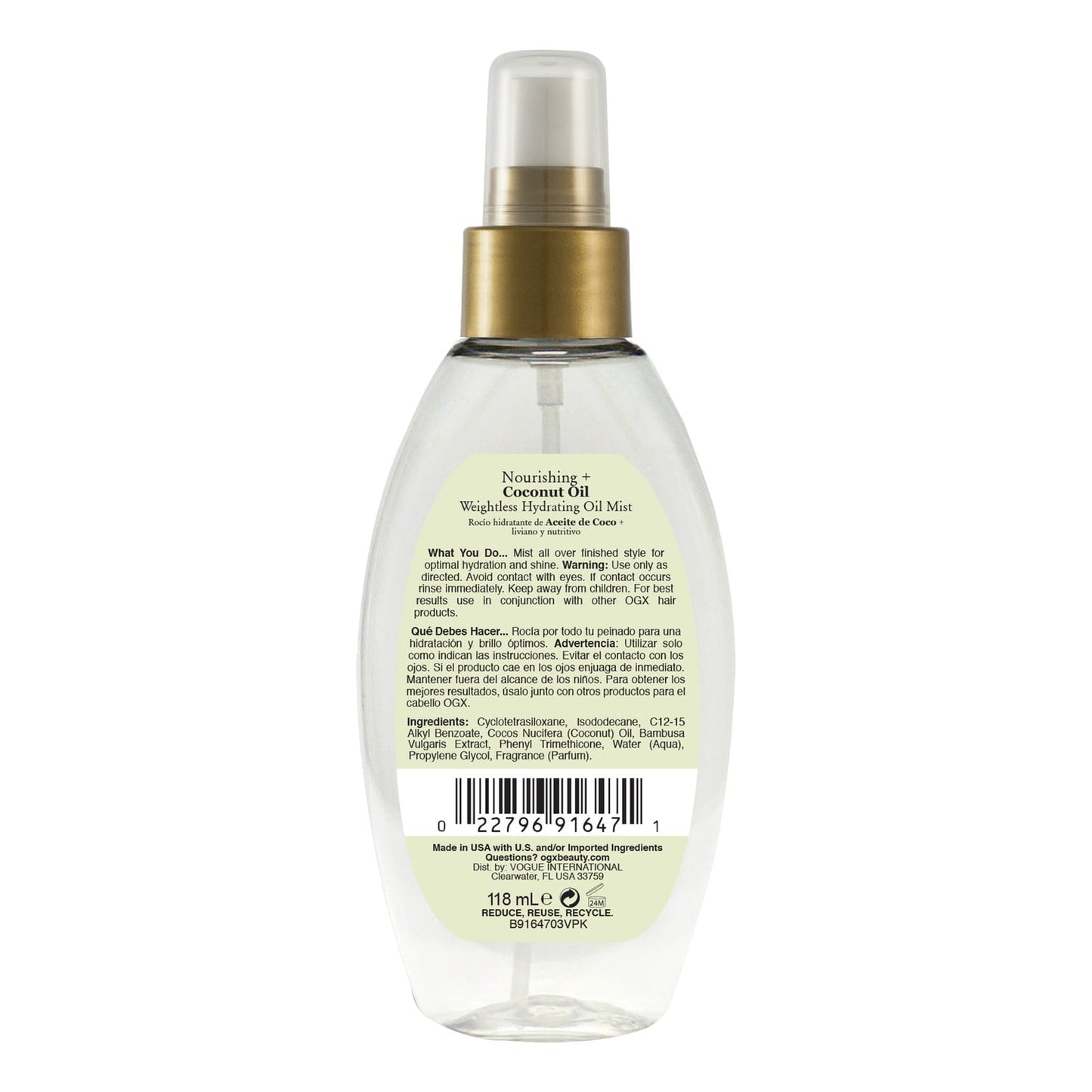 OGX Nourishing + Coconut Oil Weightless Hydrating Oil Hair Mist, Leave-In Treatment 4 fl oz