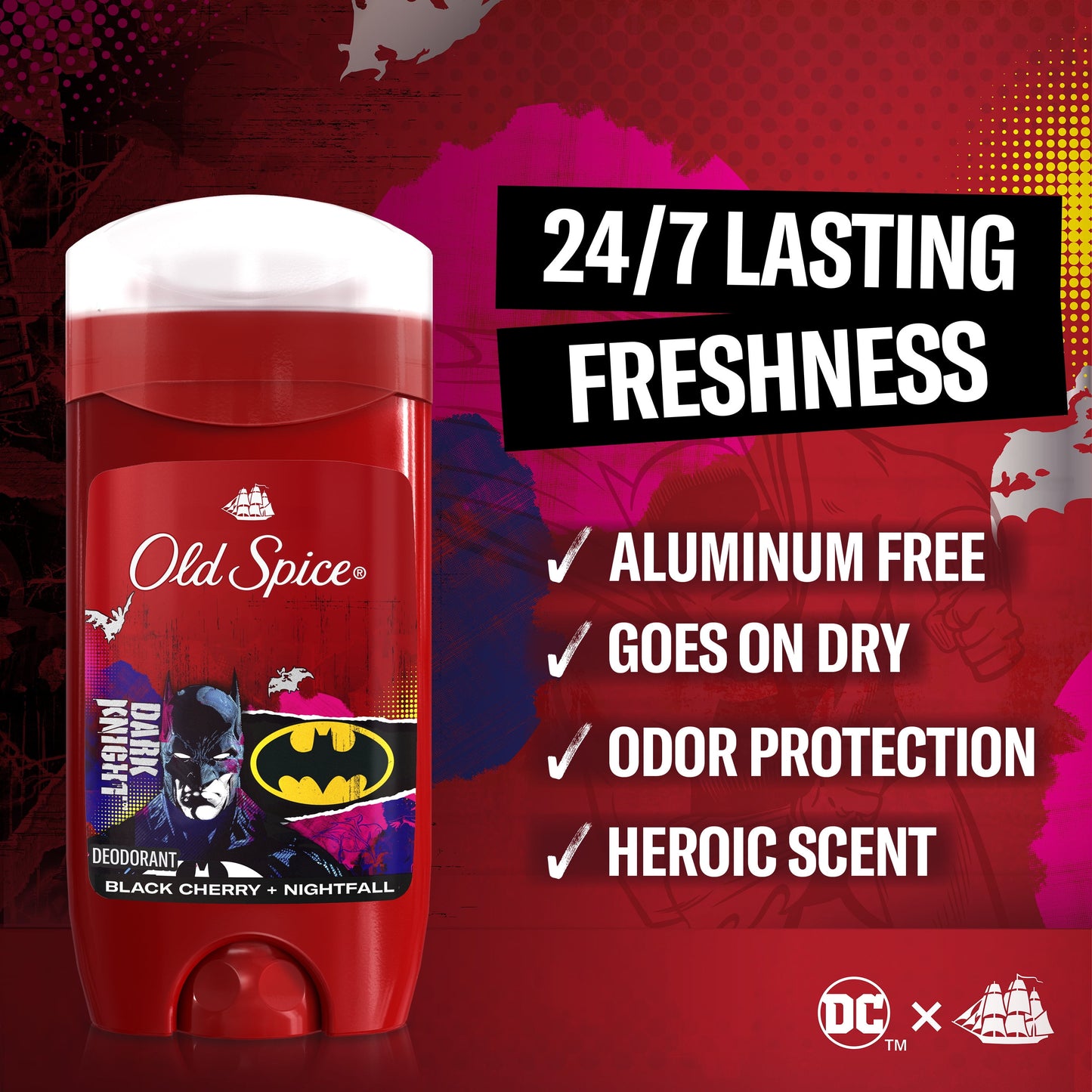 - Old Spice Aluminum Free Deodorant for Men, 24/7 Freshness, Long Lasting Odor Protection, Smell like a Hero, Batman, Black Cherry and Nightfall Scent, 3oz