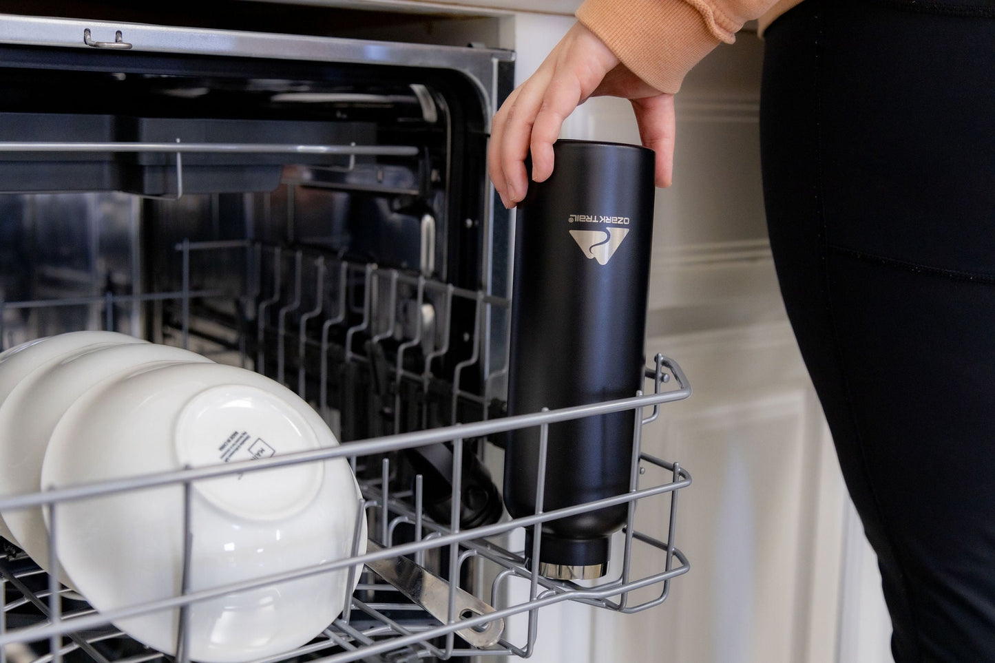Stay hydrated on your next adventure with the Ozark Trail 24oz Stainless Steel Water Bottle with Handle in Black. This 24 Fluid Ounces BPA-free double-walled tumbler is made with high-grade 18/8 stainless steel. Created for superior temperature control, it can sustain your drink whether hot or cold. The lid has a convenient handle for easy transport. It also features a durable powder coat finish. For your convenience, these Ozark Trail tumblers are top-rack dish washer safe. They are also splash-proof and sweat-proof. Whether you are going on a weekend camping trip or for your morning commute, the Ozark Trail Double Wall Vacuum Sealed Water Bottle is perfect for you. 1 Each.