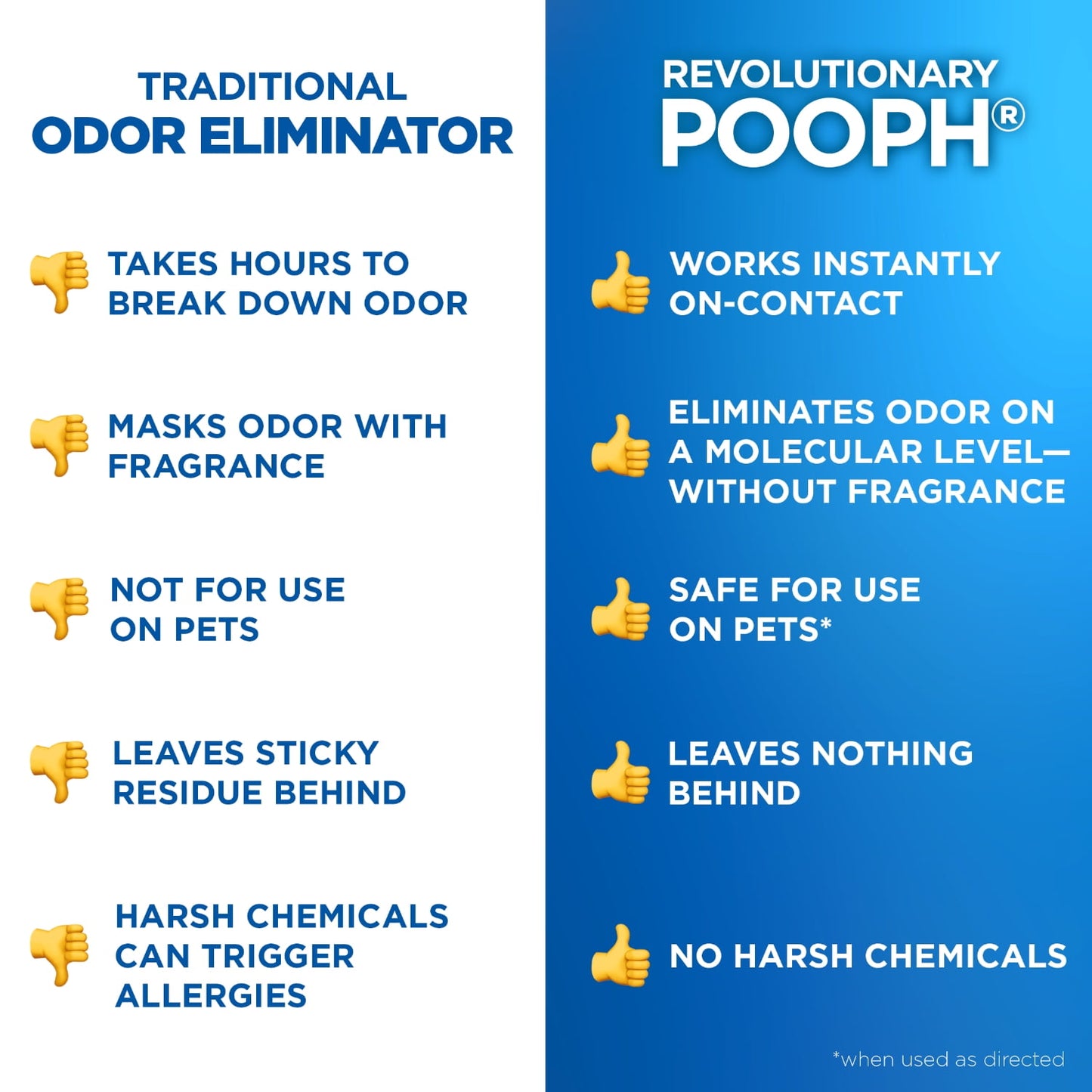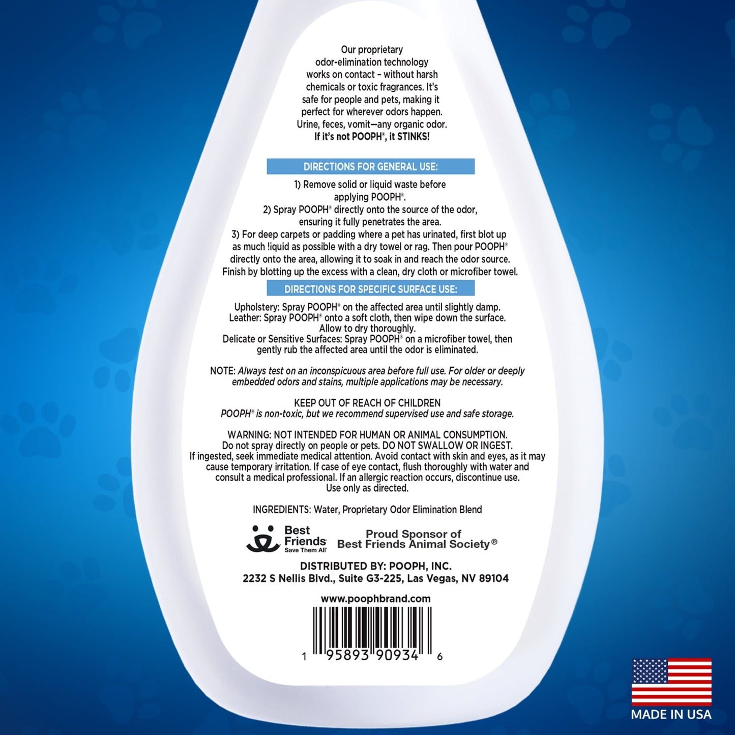 Safe for use around pets, children, and home surfaces, the non-toxic formula contains no harsh chemicals, making it ideal for everyday use. Perfect for carpets, furniture, pet bedding, litter boxes, and other areas where odors linger, Pooph provides a reliable and gentle solution for a fresher, cleaner home.