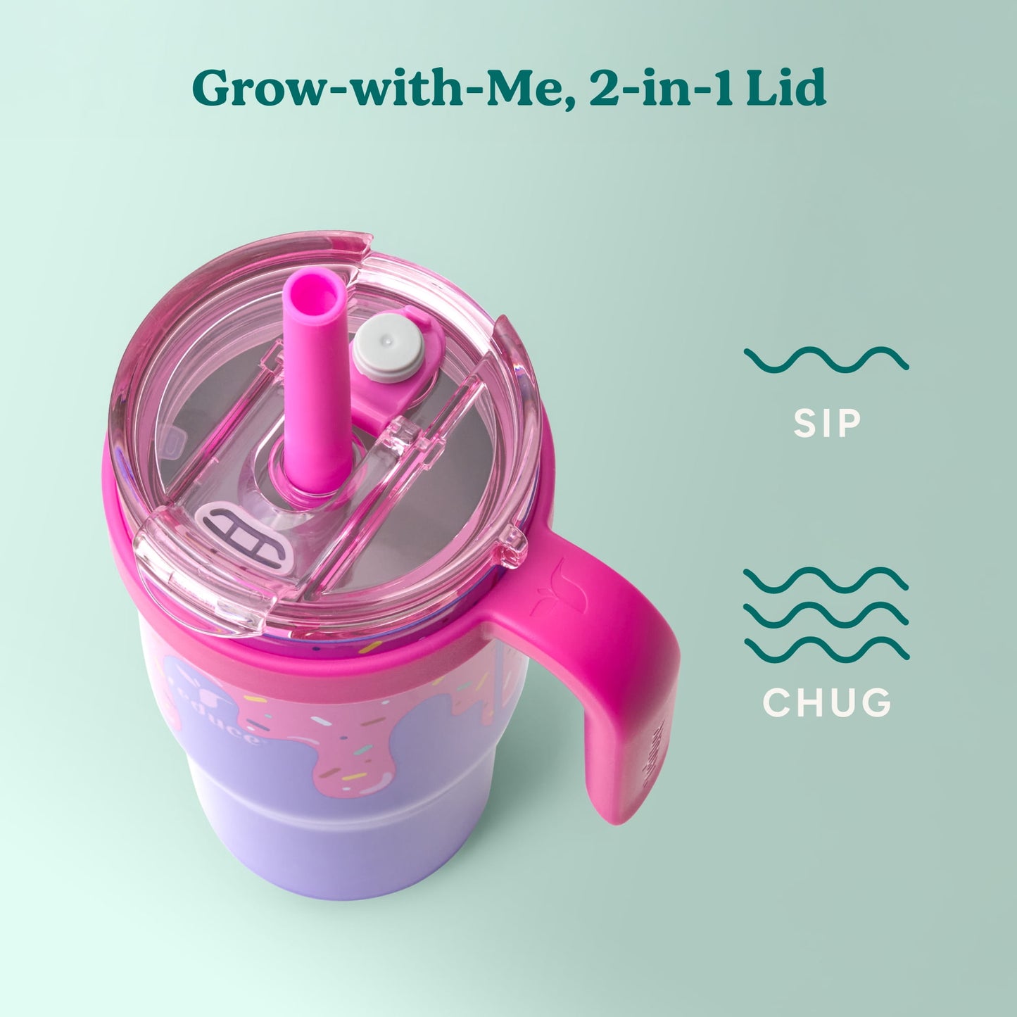 - GROW-WITH-ME LID - Start sipping from the spill-proof straw then graduate to drinking from the lid spout