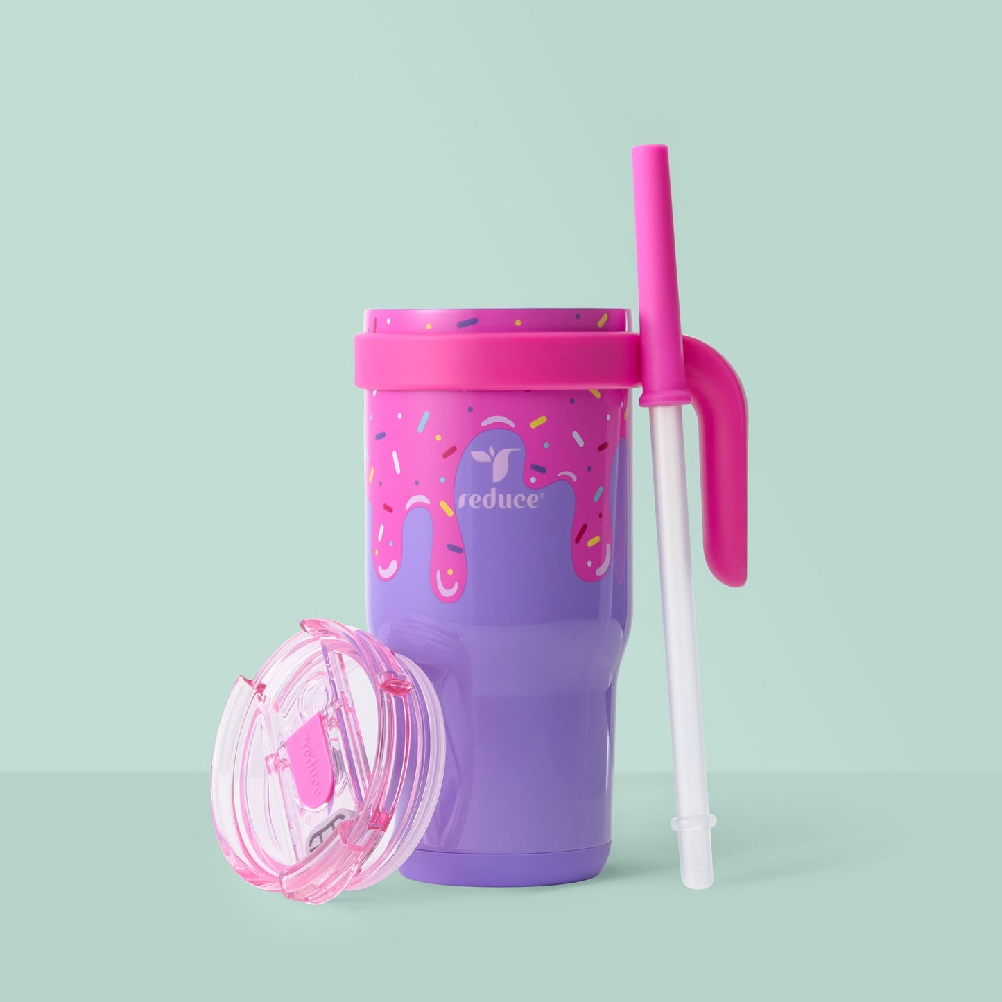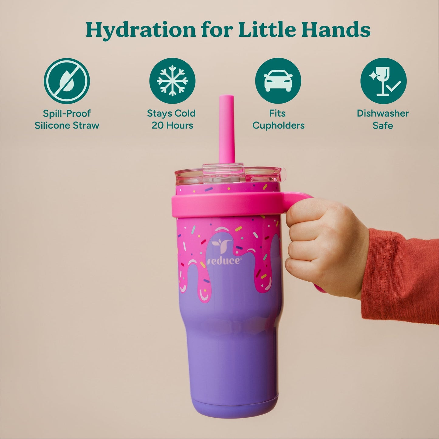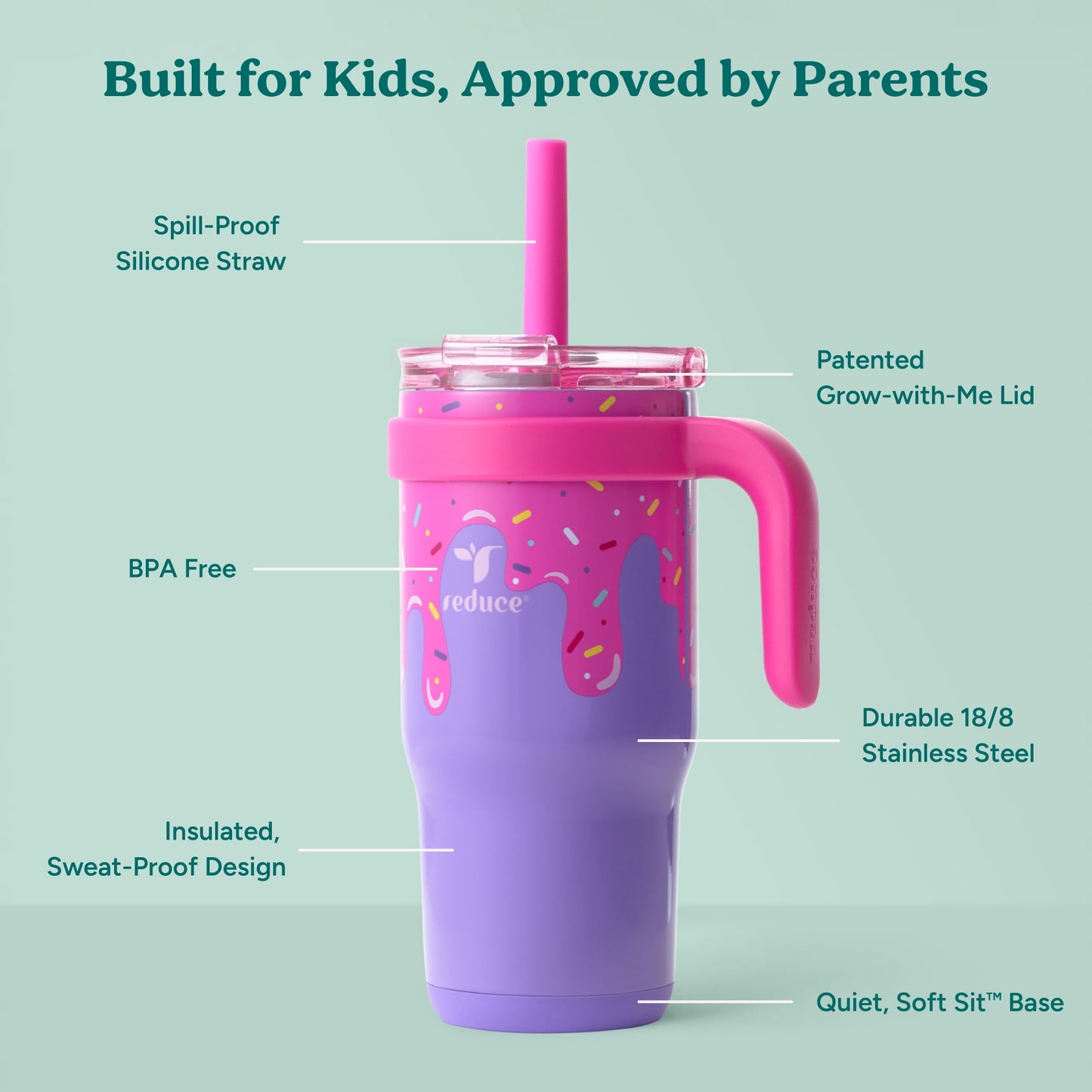 Reduce Coldee Kids Tumbler with Spill-Proof Straw & Handle. Insulated Stainless Steel 18 oz, Ice Cream