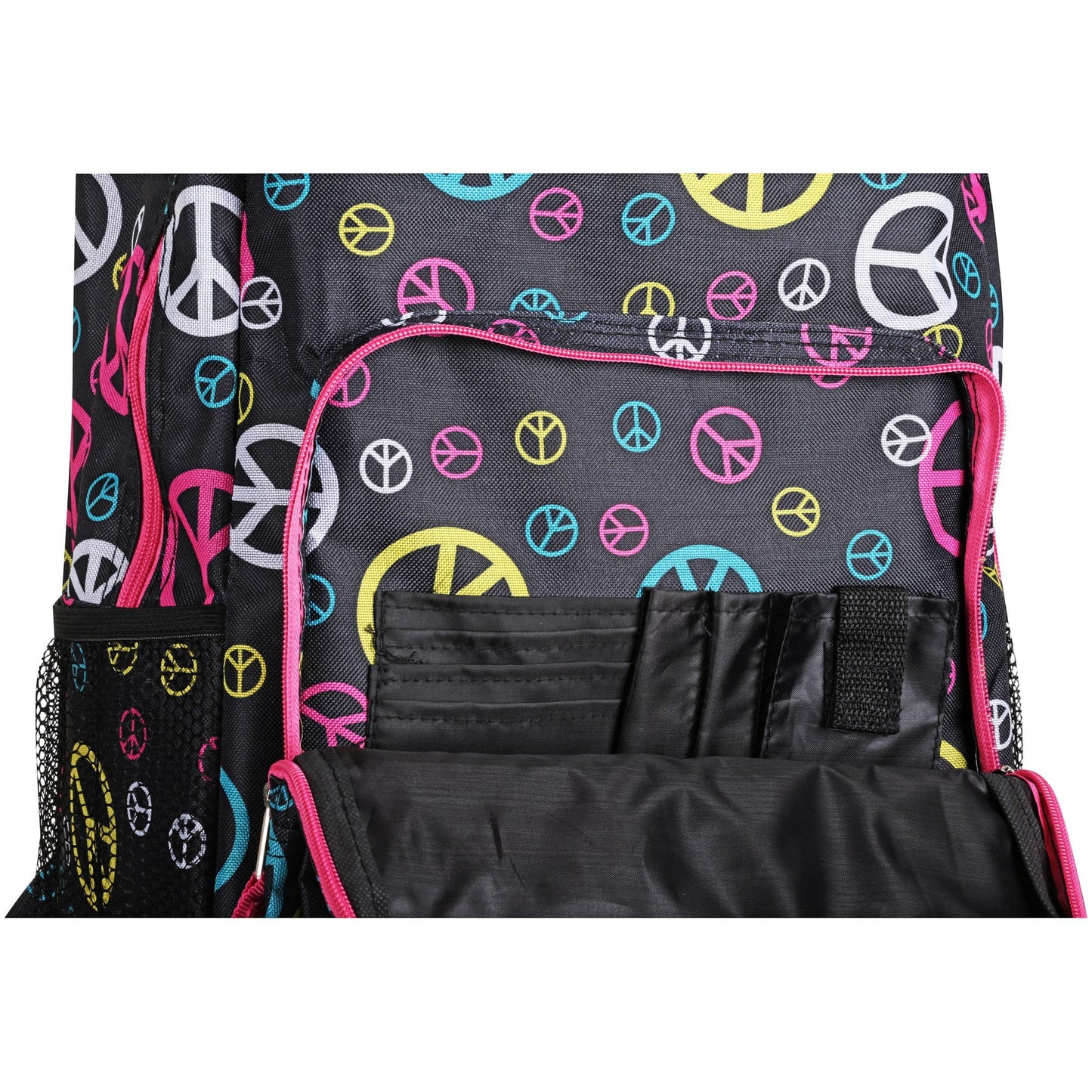 With a spacious main compartment and additional pockets, it can hold books, laptops, clothes, and personal items. Its durable construction ensures long-lasting use, while the vibrant Peace design adds a stylish touch.