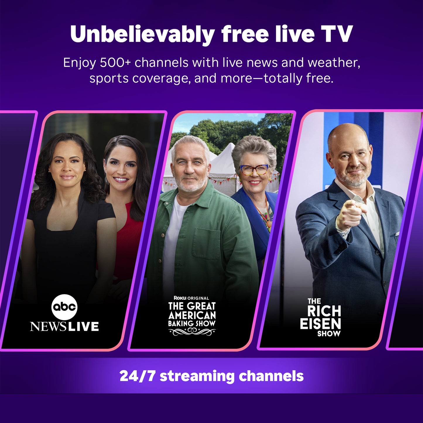 - Unbelievably free live TV: Enjoy 500+ TV channels with live news and weather, sports coverage, and more—totally free.
