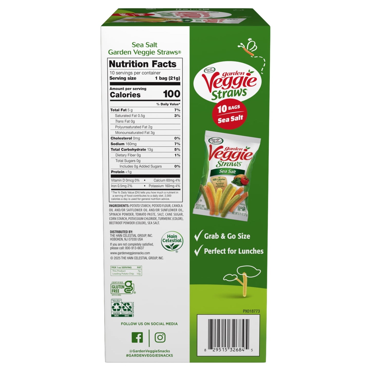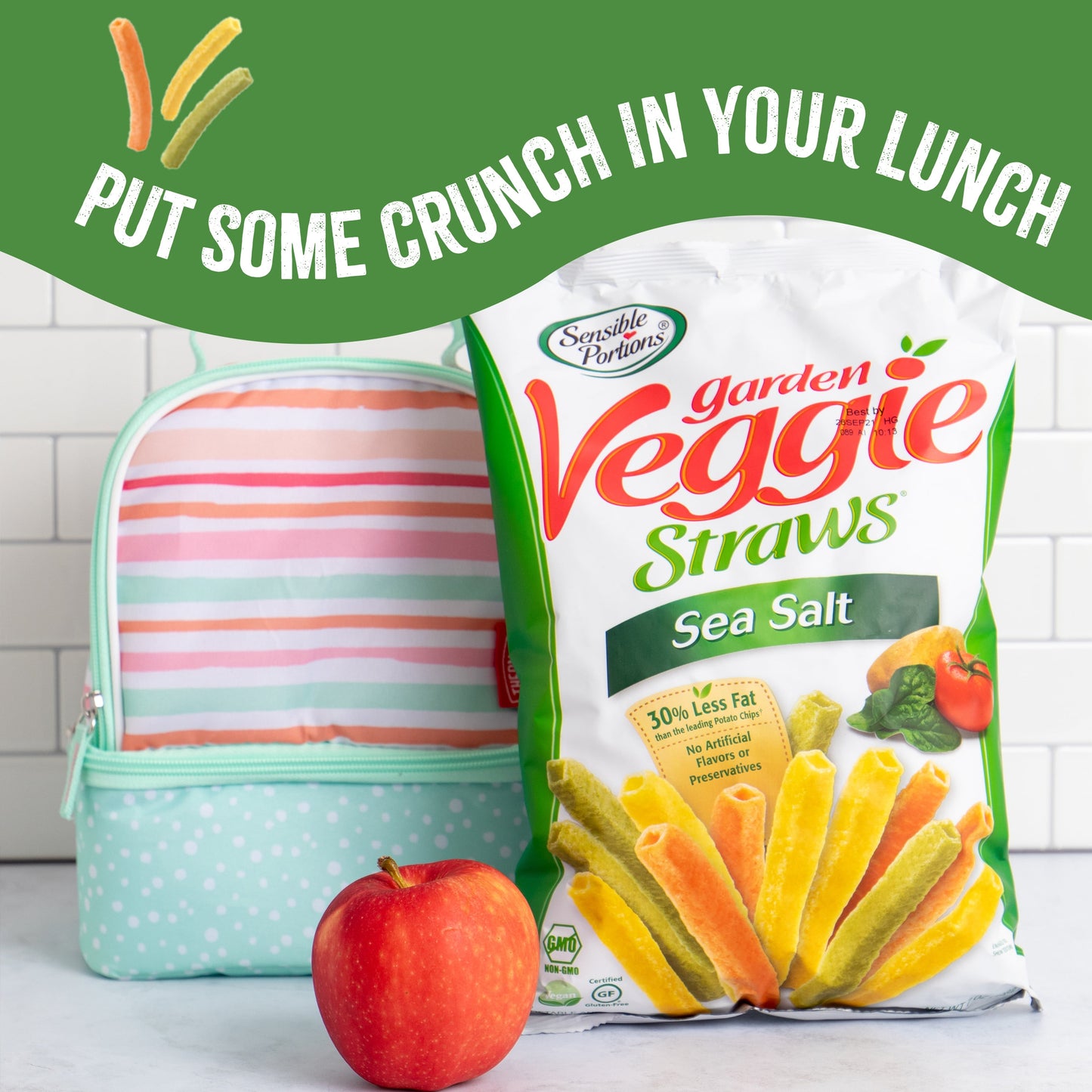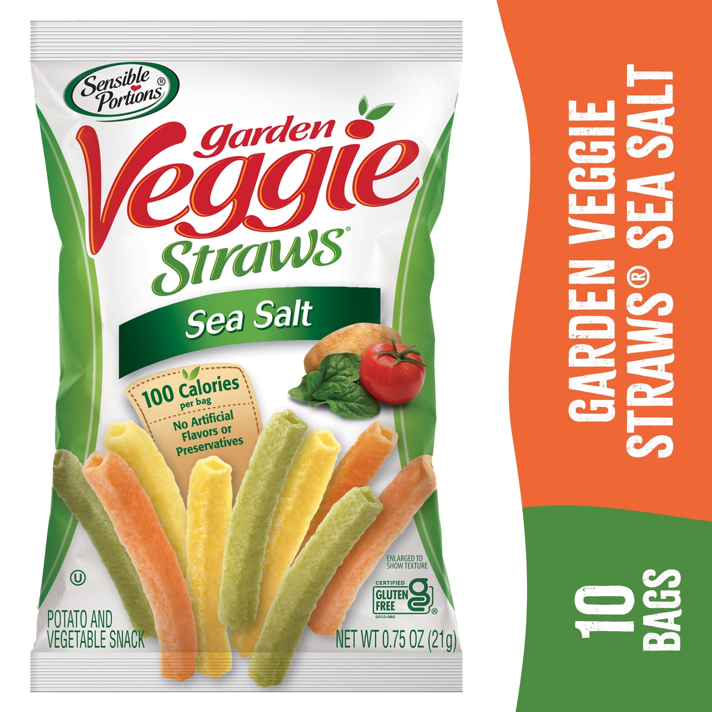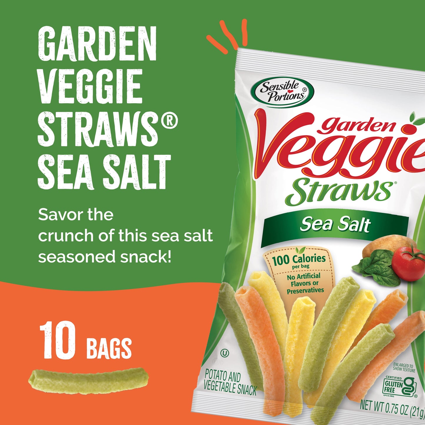 Snack smarter with Sensible Portions Garden Veggie Straws, Sea Salt, 0.75 oz (10 Count). Made with garden-grown potatoes and vegetables, these crunchy straws are a fun, better-for-you alternative to chips. Lightly seasoned with sea salt, they offer a savory, satisfying taste without the guilt. Each pack is perfectly portioned at 0.75 oz, making them convenient for school lunches, work snacks, or on-the-go munching. With 30% less fat than regular potato chips, gluten-free, and non-GMO, Sensible Portions Veggie Straws are a deliciously smart snack choice for the whole family.