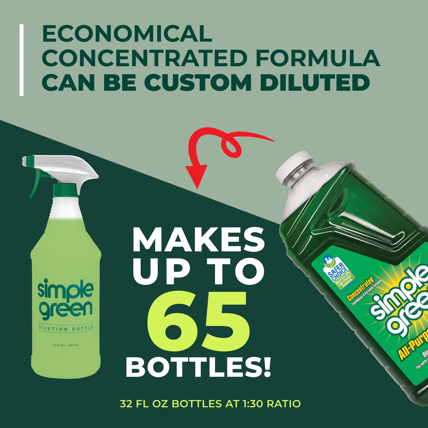 - Simple Green All-Purpose concentrated cleaner (67.6 fl. oz) removes dirt, grease, and stains