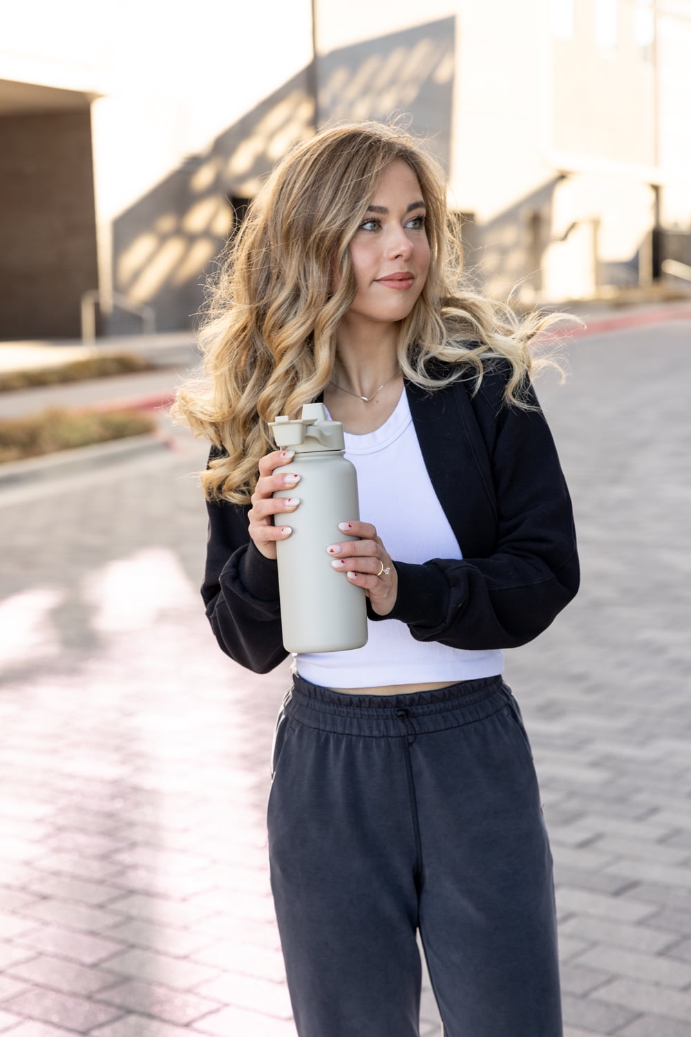 The Simple Modern Summit Water Bottle in Almond Birch is double walled and vacuum insulated to keep your drink cold for hours. This 32 fluid ounce vessel is perfect for staying hydrated on the go. The water bottle comes with a straw lid so you can sip on your favorite beverage all day long. The Summit bottle is made from 18/8 stainless steel. Not recommended for hot or carbonated beverages.