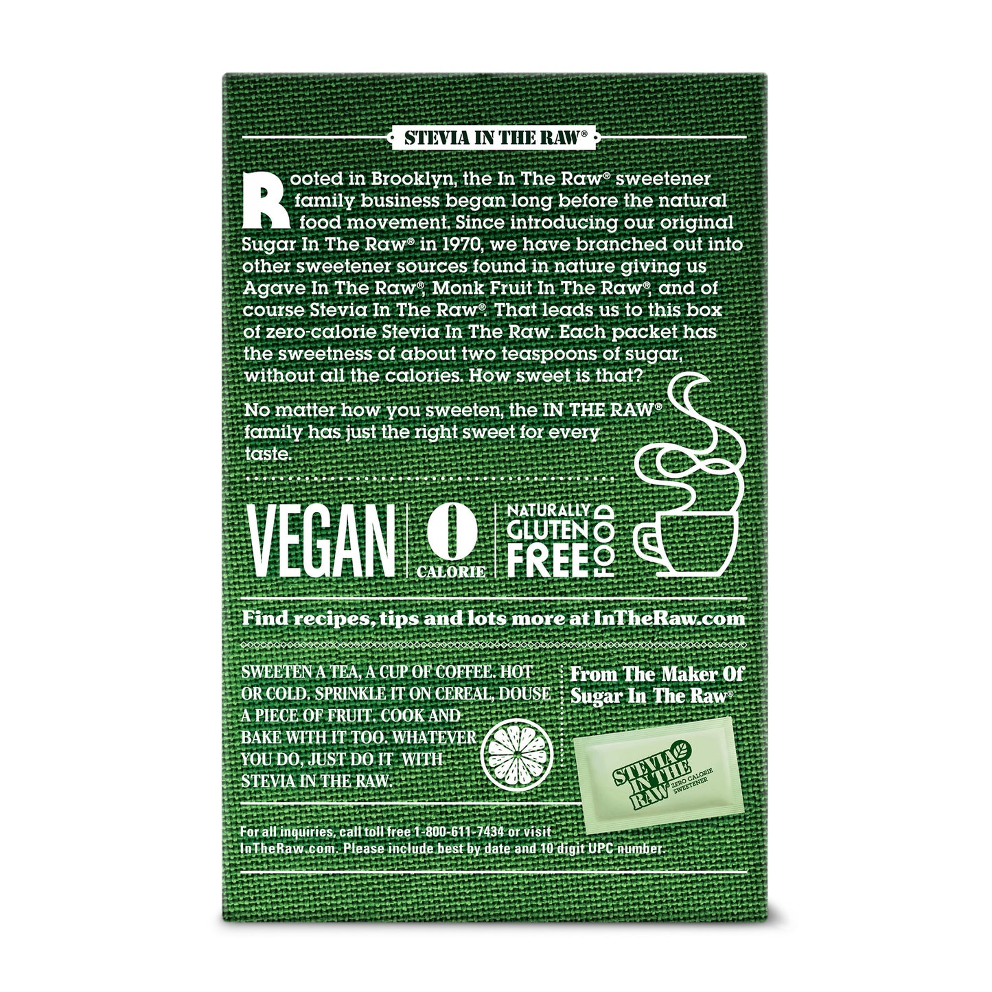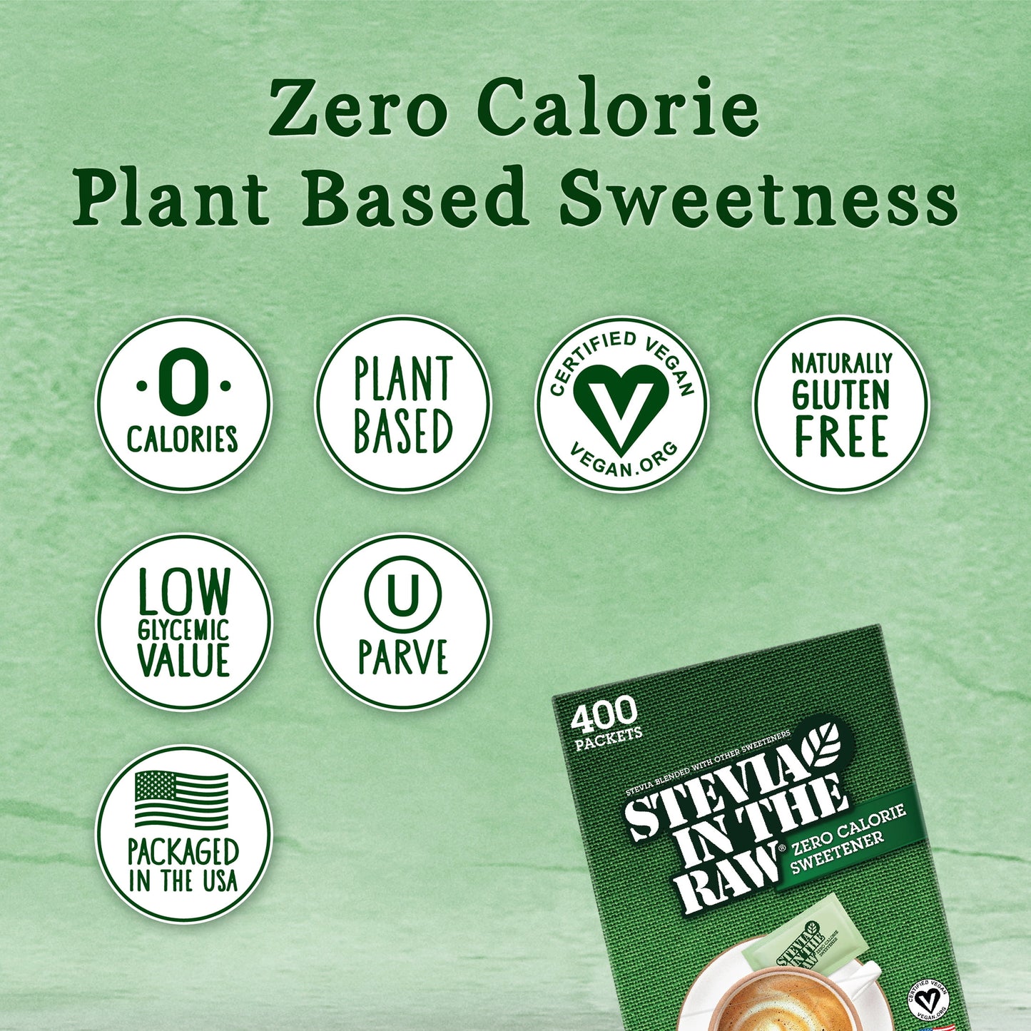 Stevia in the Raw Zero Calorie Sweetener Packets, 400 Count (14.1 oz) – Vegan Sugar Substitute