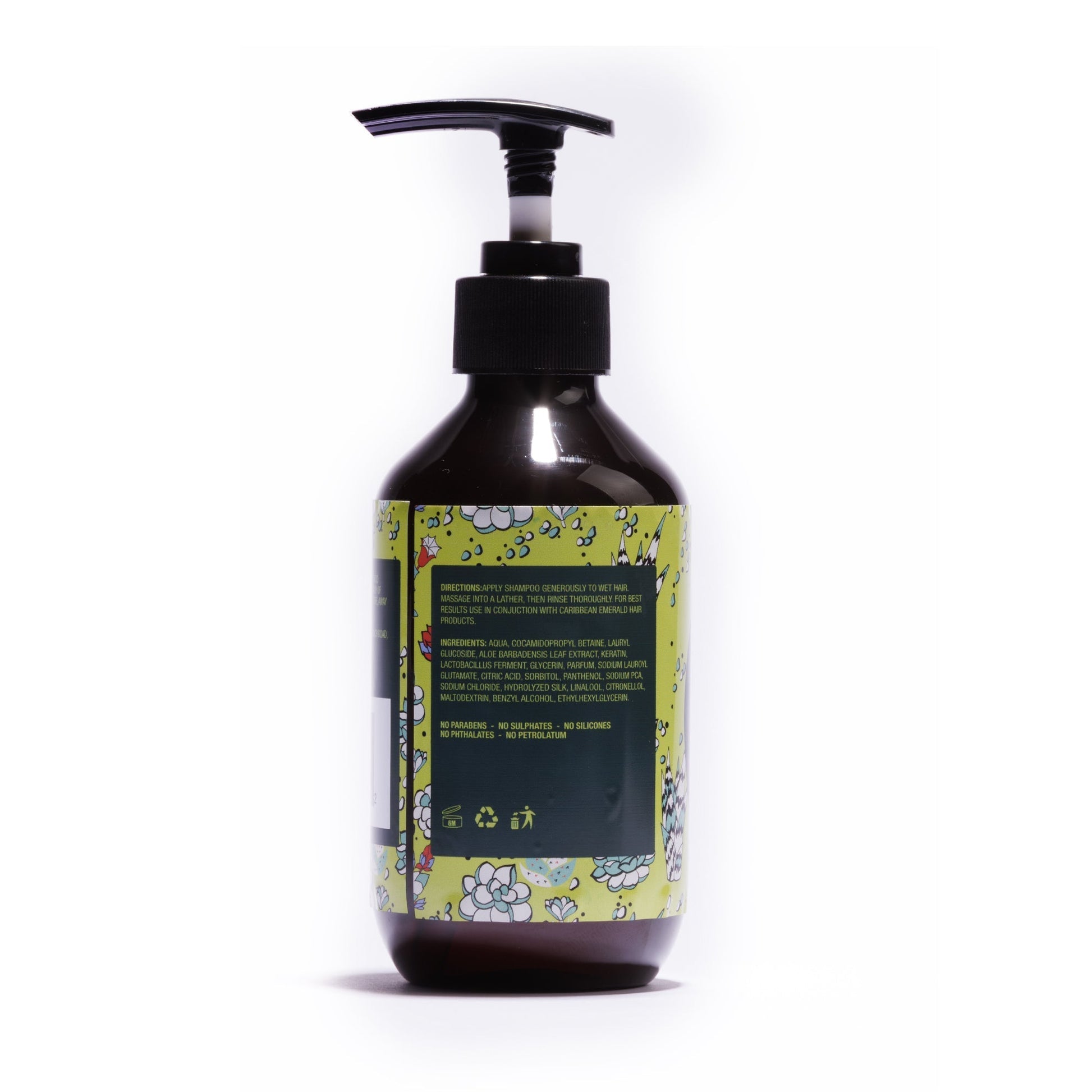 Directions: Apply shampoo generously to wet hair. Massage into a lather, then rinse thoroughly. For best results use in conjunction with Caribbean Emerald hair products.