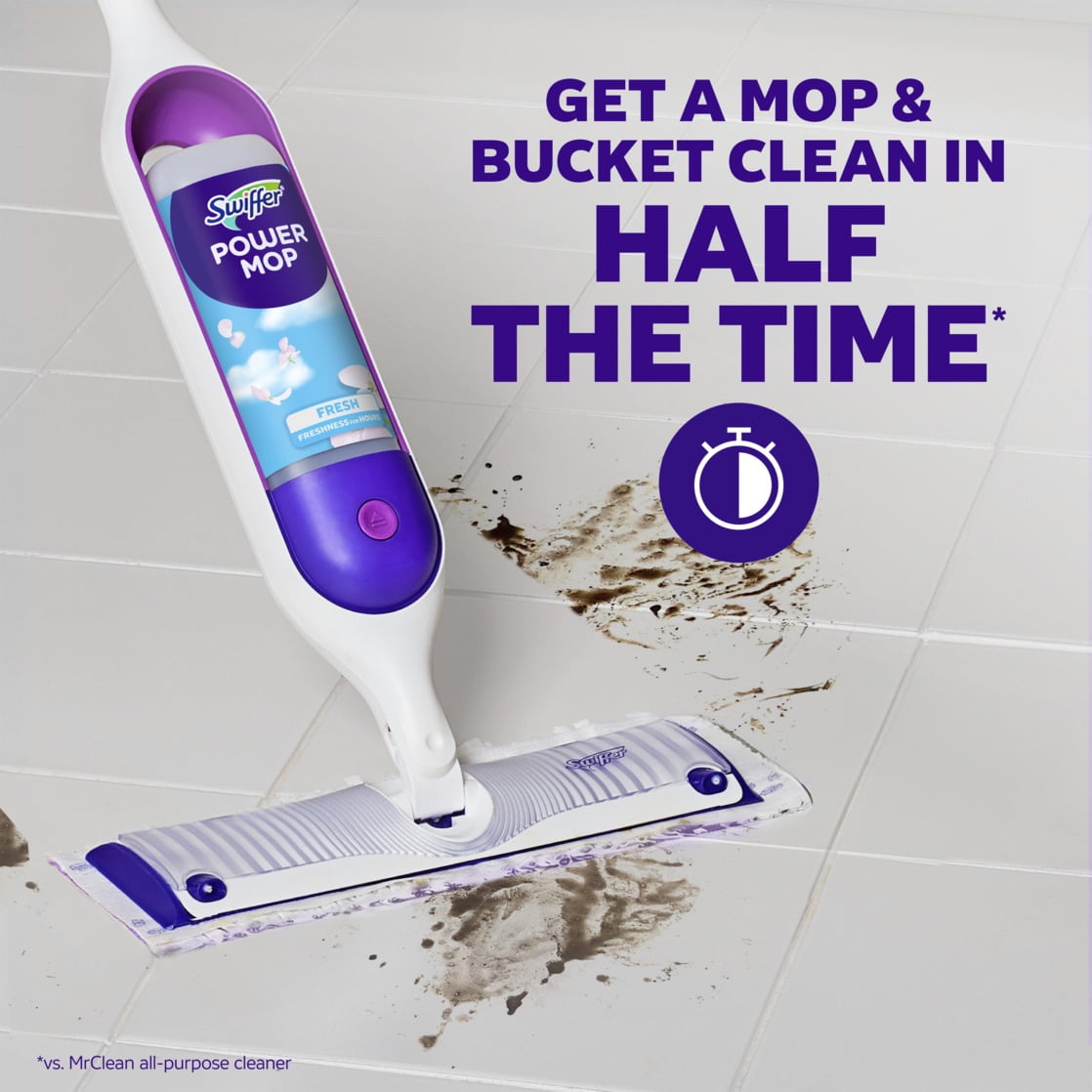 - Mop smarter with Swiffer PowerMop Floor Cleaner and clean in half the time*! *Vs. mop and bucket; includes cleaning and drying time.