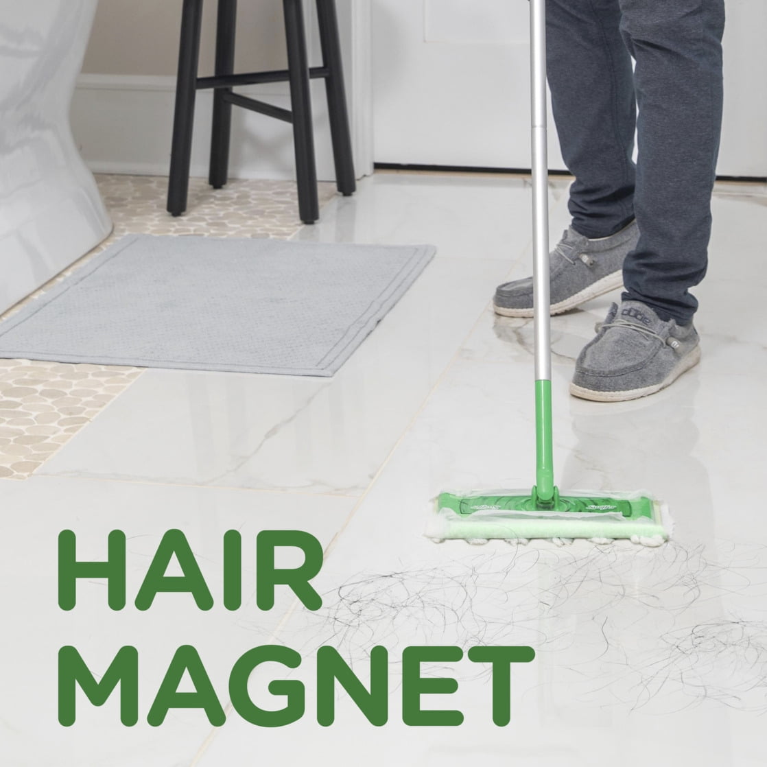 - Brooms and vacuums often leave behind invisible hair, fine dirt, and dust. Swiffer's dry cloths have thousands of microscopic fibers that act as a hair magnet attracting hair, dust, dirt, and allergens and trapping them deep within the cloth's core.