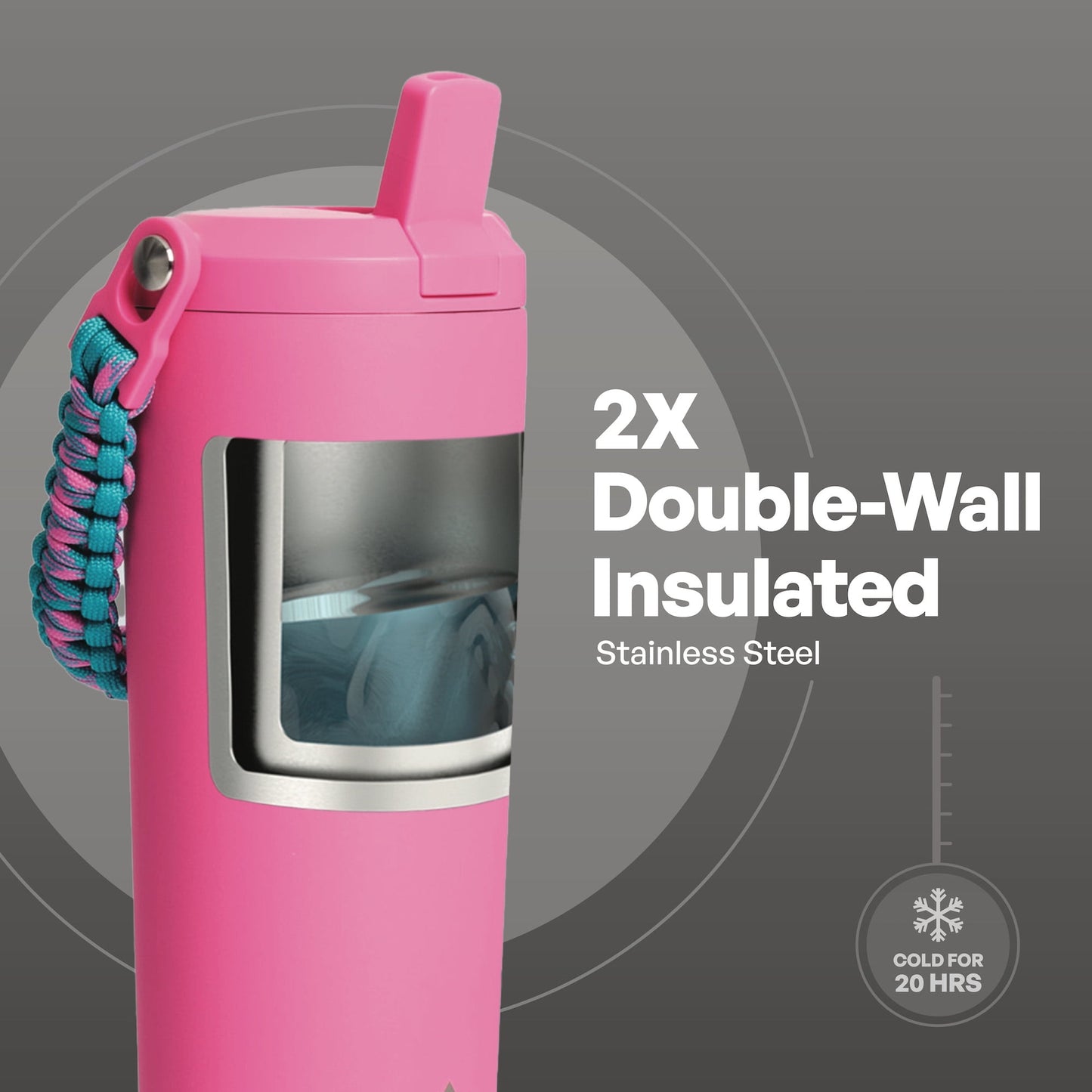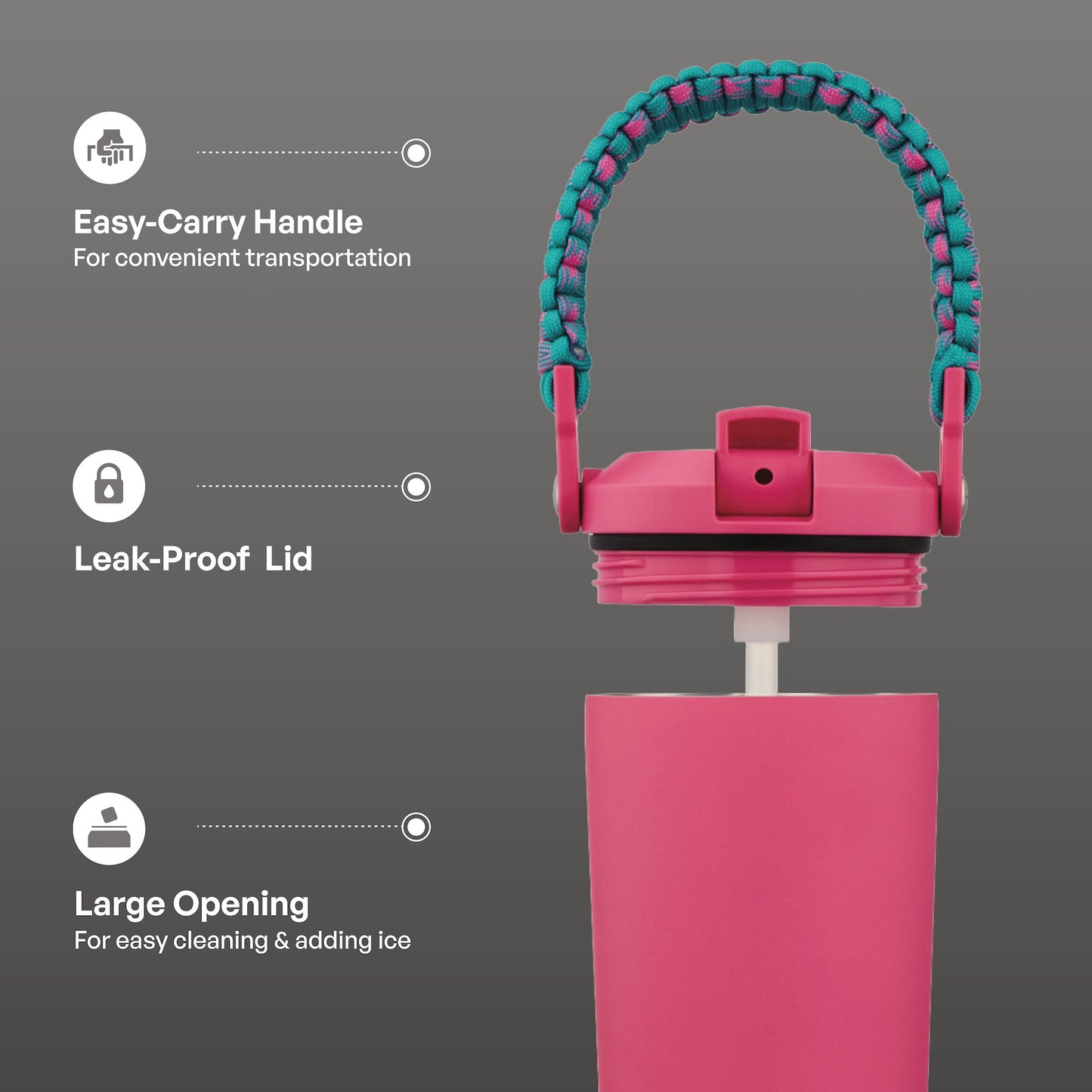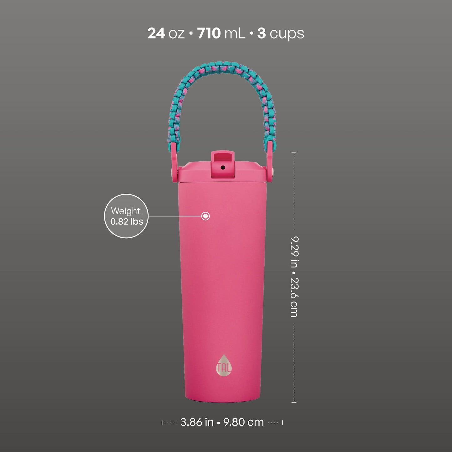 TAL Stainless Steel Hudson Paracord Handle Water Bottle 24oz, Pink