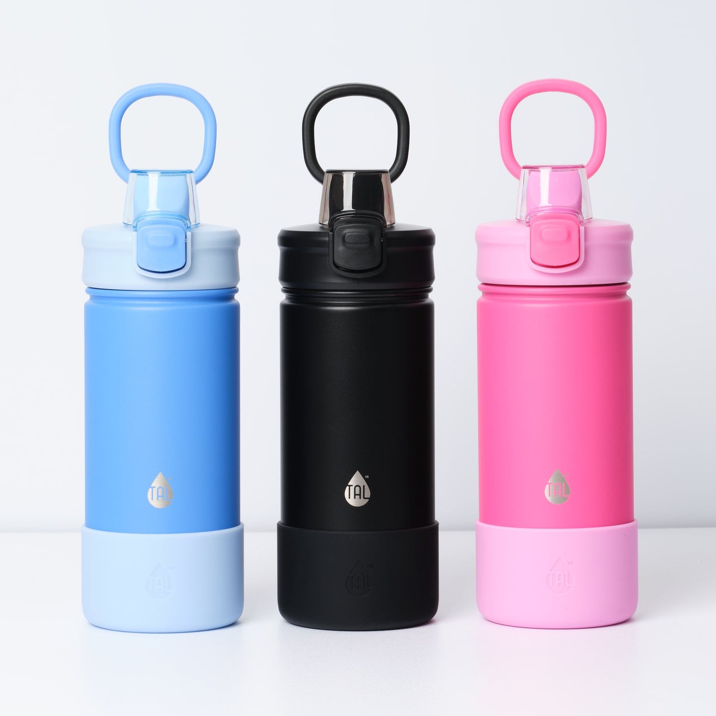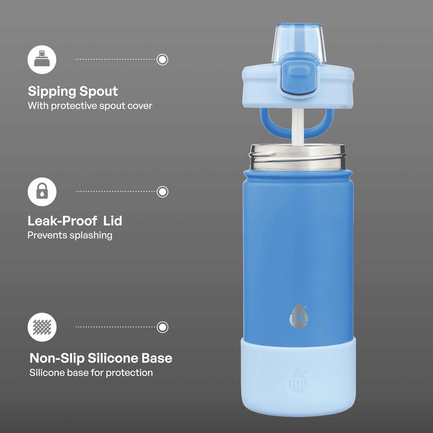 Stay refreshed in style with the TAL Stainless Steel Ranger Push Water Bottle, blue, 1 each. This 18 oz bottle is built for busy days, featuring double-wall insulation to keep drinks cold and a push-button lid with an open locking mechanism for spill-free sipping on the go. The easy-use sipping spout makes hydration effortless, while the wide-mouth opening allows for quick cleaning and hassle-free ice refills. A soft silicone boot at the base helps keep the bottle in place and protects surfaces from scratches. With its bold blue color and kid-friendly size, this bottle is the perfect companion for school, practice, or weekend adventures. Durable, functional, and fun—it’s made to keep up with your child’s active lifestyle.