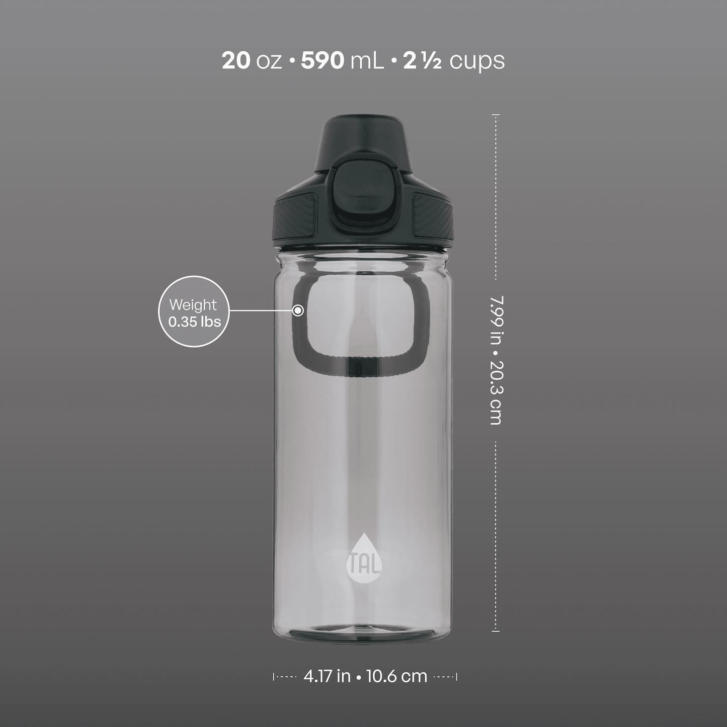 - TAL Tritan Ranger Lock Water Bottle, 20 fl oz, Black, 1 each