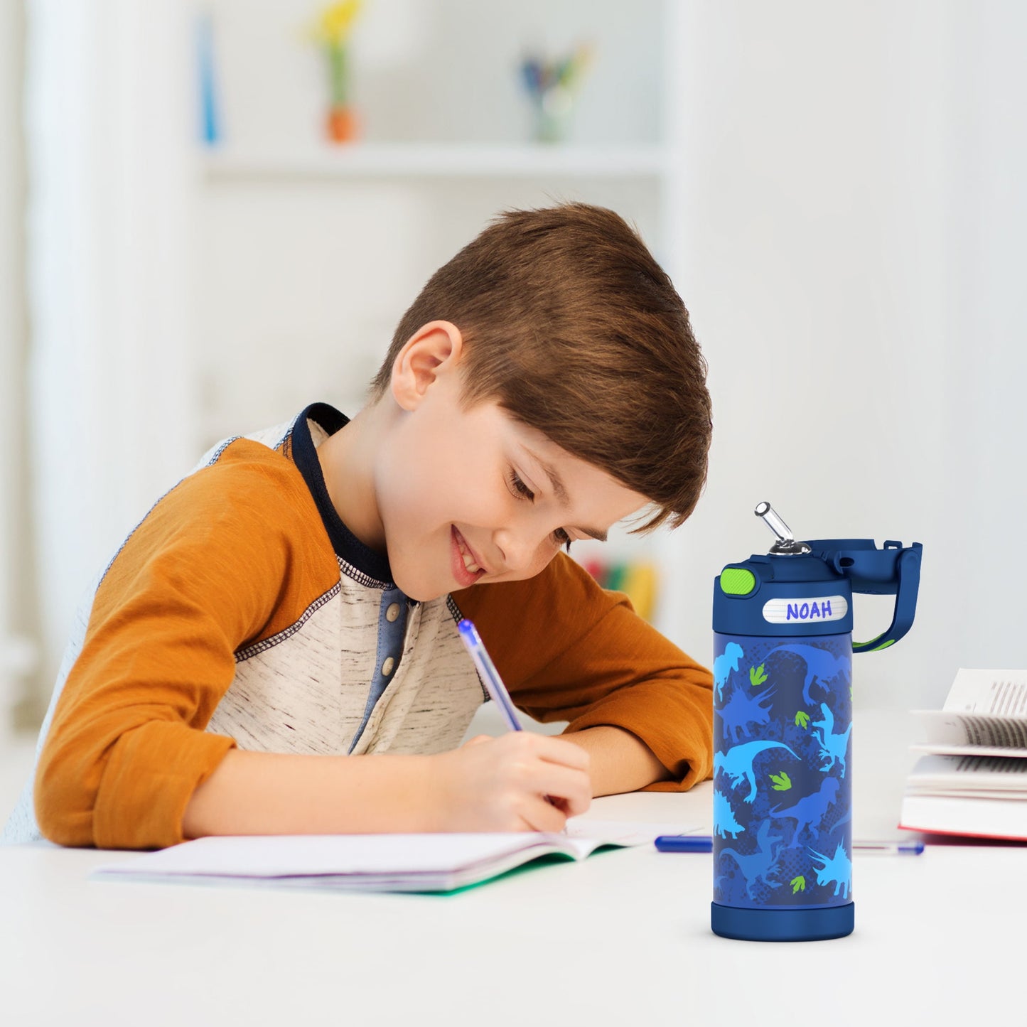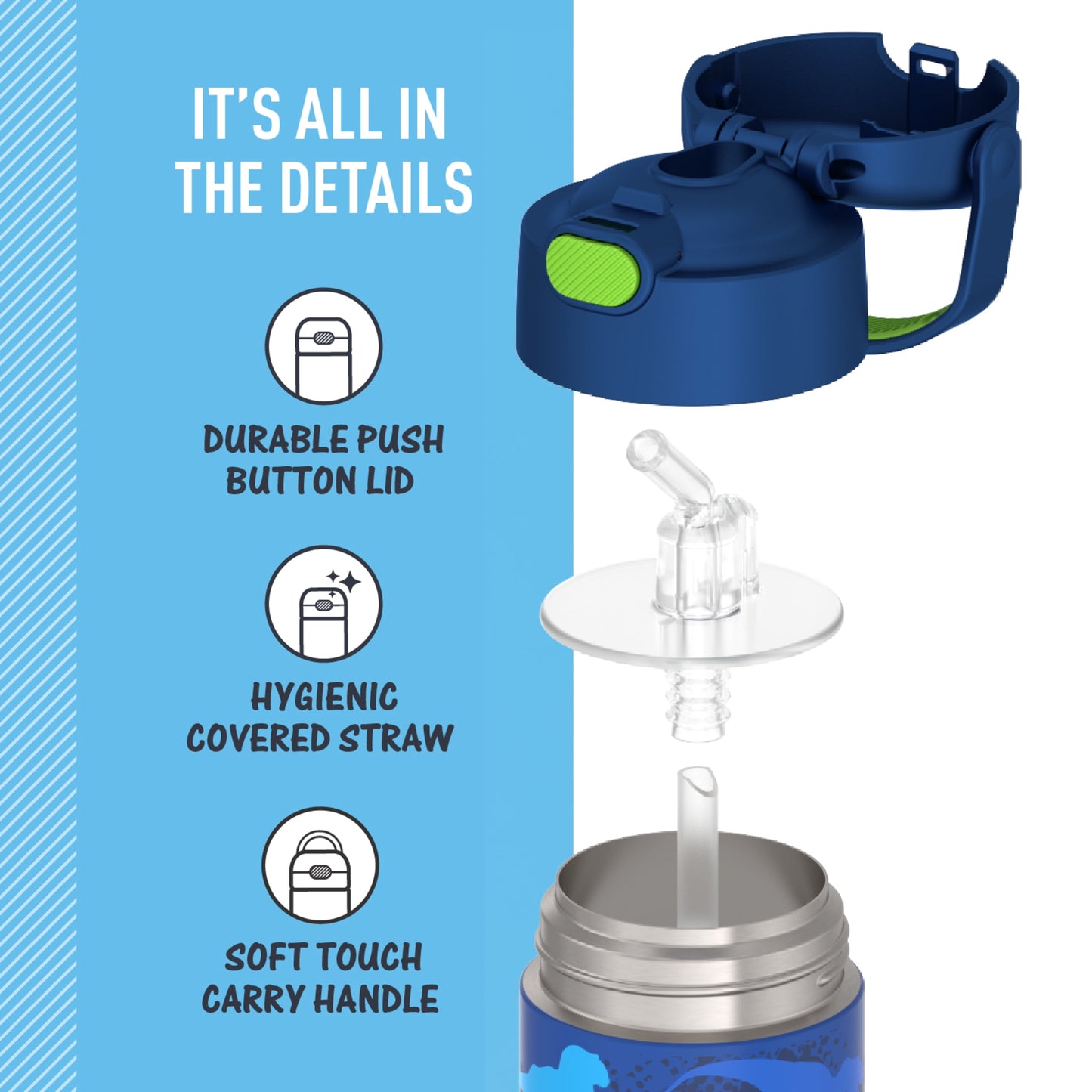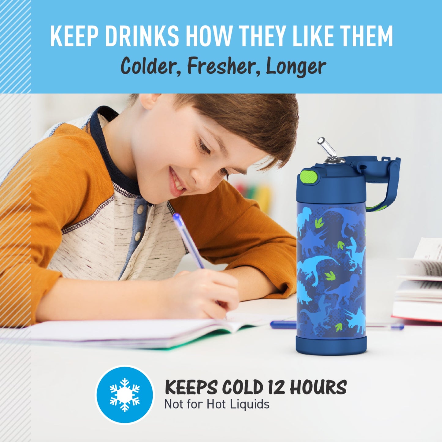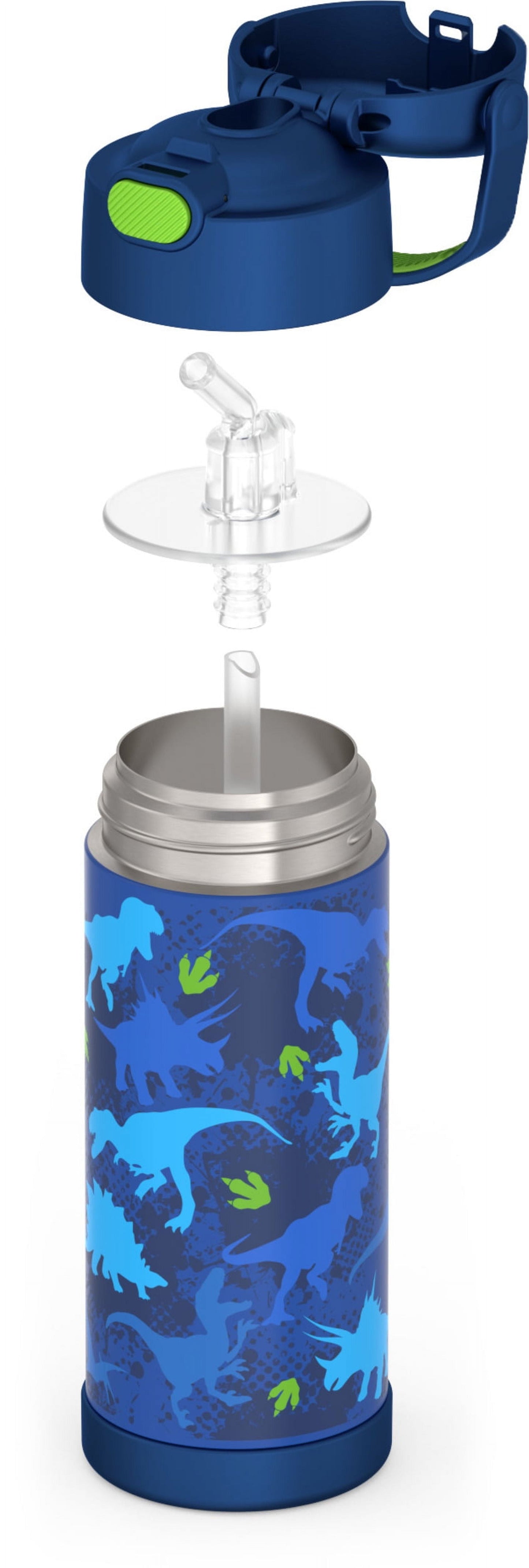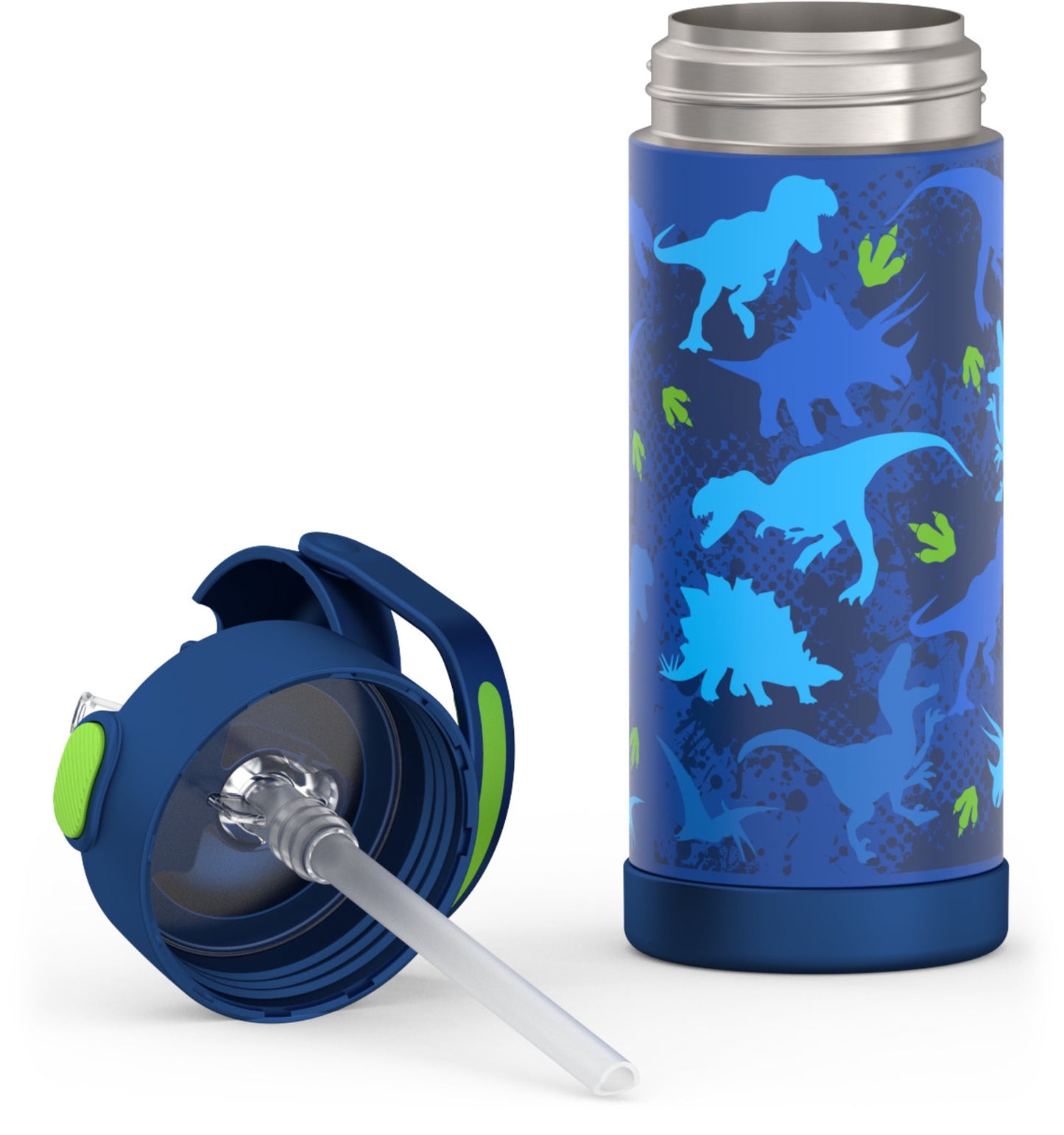 Thermos Stainless Steel Funtainer Water Bottle with Straw, Dinosaur, 14 Fluid Ounces