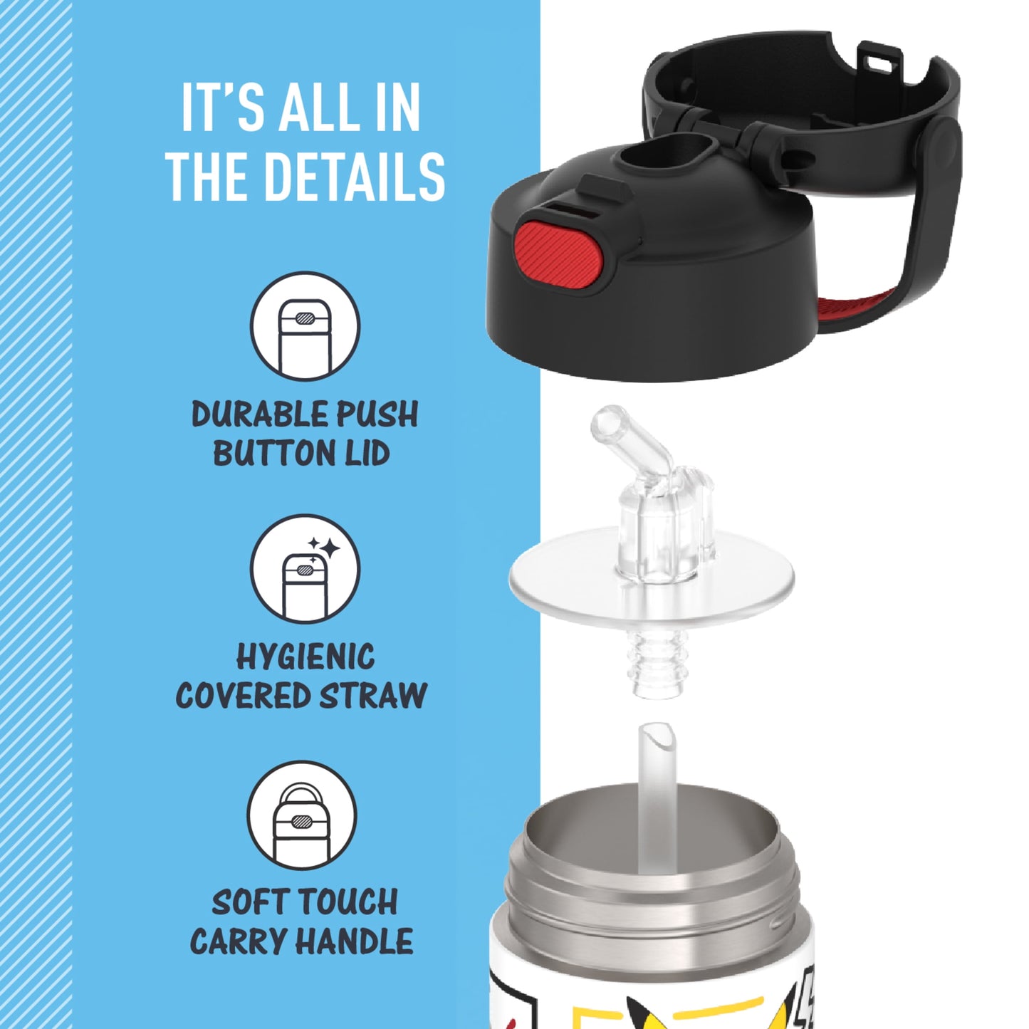 - Push button lid with pop-up straw