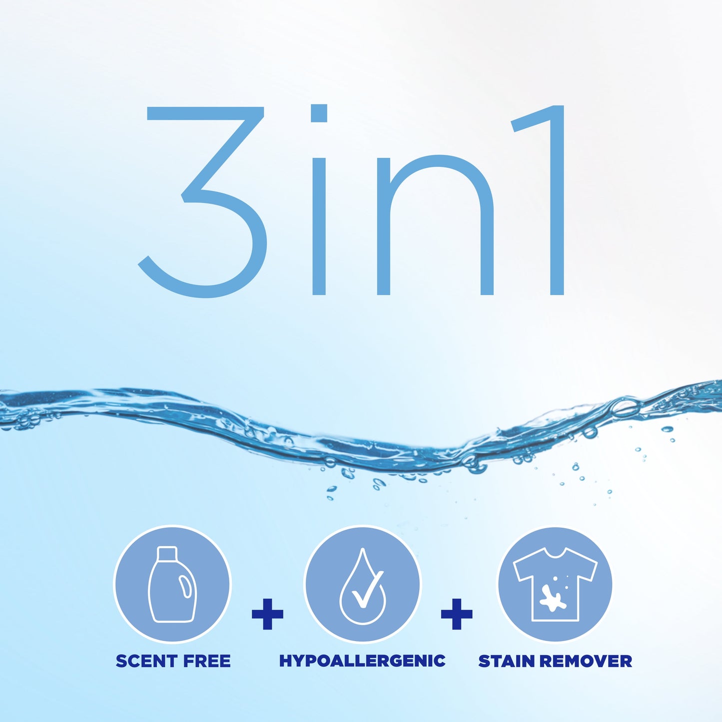 - 3-in-1 CONCENTRATED DETERGENT: Scent Free + Hypoallergenic + Stain Remover