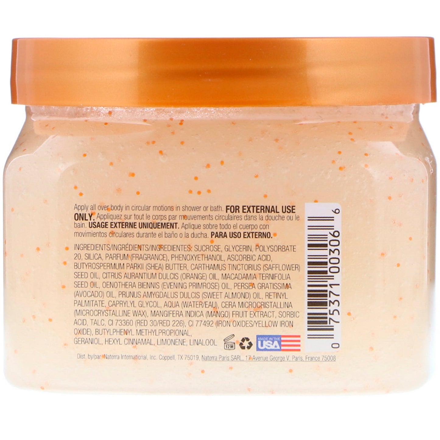 Experience an intense exfoliation and reveal glowing skin with Tree Hut Sugar Body Scrub in the juicy scent of Tropical Mango. Made with Sugar, Shea Butter, Mango Puree and an array of natural oils including Evening Primrose, Avocado, Macadamia, Sweet Almond, Safflower and Orange Oils. Deeply nourish and balance skin’s hydration to help restore skin's natural glow. Exfoliating body scrub removes dull, dry skin to reveal glowing, soft, smooth skin. Tree Hut’s Shea Sugar Scrubs are effective exfoliating body scrubs that remove dull, dry skin to reveal glowing, soft, smooth skin. Mango moisturizes and softens and is known to contain beta-carotene, vitamins A & C to help refine texture and boost radiance. Sugar is Tree Hut’s natural exfoliant that effectively polishes away dead skin while helping to boost circulation to the skin surface. Natural Shea Butter is known to deeply moisturize, nourish and soften dry, skin while helping to promote elasticity. Natural oils condition skin to help prevent dryness and balance hydration for a refined, healthy glow. Tree Hut Shea Sugar Scrubs feature a 6-oil blend of: Avocado Oil, Macadamia Oil, Sweet Orange Oil, Sweet Almond Oil, Evening Primrose Oil, Safflower Oil.