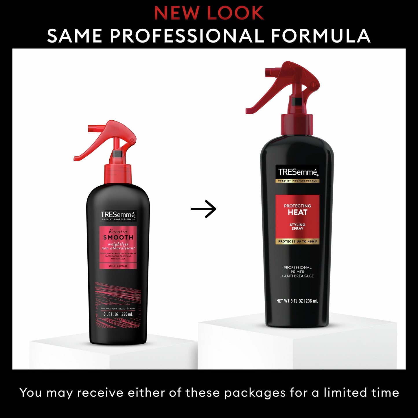Tresemme Styling Hairspray Protecting Heat and Frizz Control, 8 oz. The heat is on! Protect your strands up to 450°F Tresemme Protecting Heat Styling Spray. Our lightweight heat protecting formula is designed to designed to protect hair against breakage and from the heat of your favorite styling tools, leaves hair with lasting smoothness and frizz control. Every ingredient is carefully selected to ensure your hair receives the best possible care. Our hair care products are Certified Cruelty-Free by PETA. Apply Tresemme Protecting Heat Styling Spray to damp hair for heat and breakage protection before heat styling or to dry hair before using a curling or flatironing. Finish your style with Extra Hold Hairspray for all-day hold. For adult use.