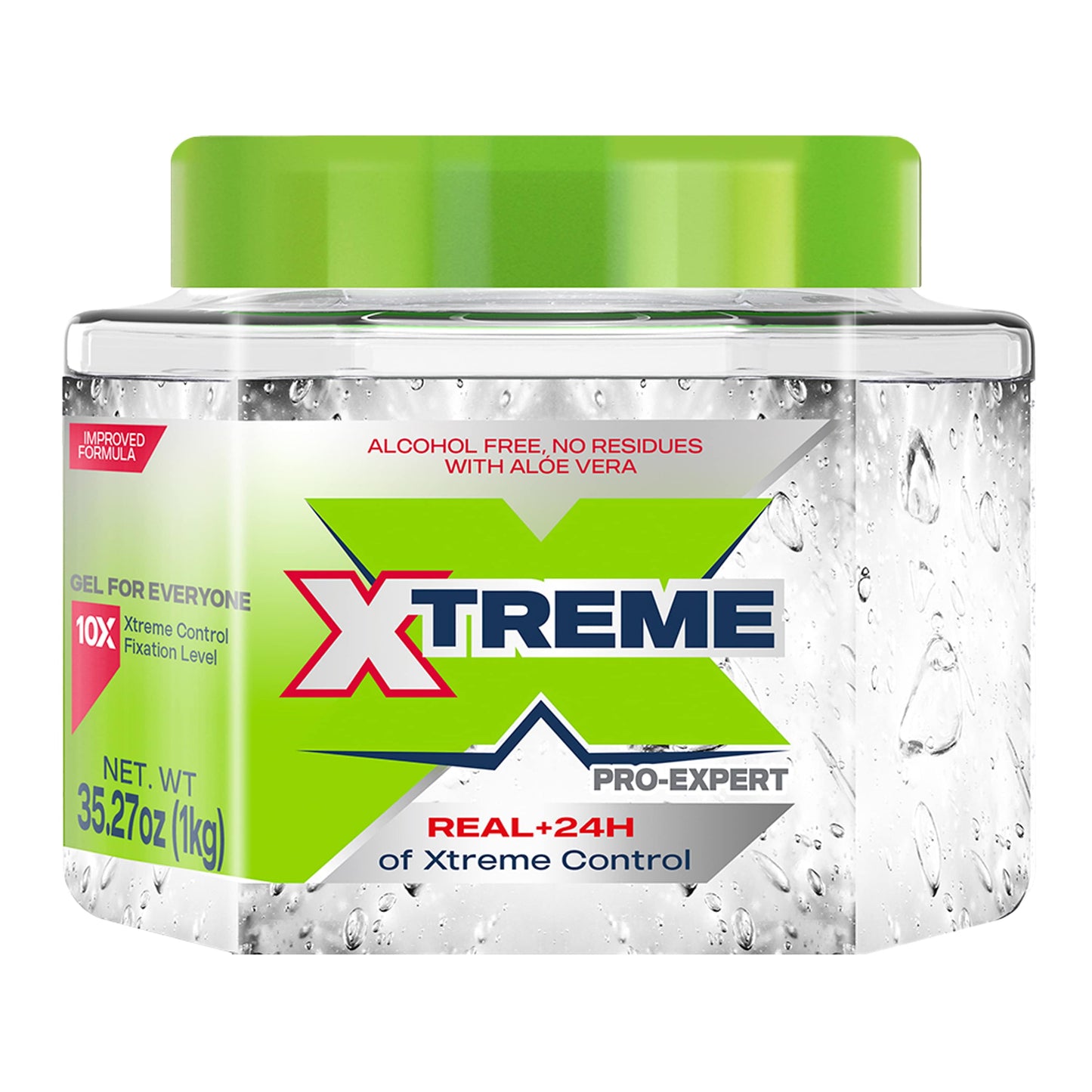 Lock in your looks with Xtreme Professional Styling Gel, l Jumbo Clear Jar. This ultra-powerful styling essential keeps styles in place for up to 24 hours without drying, stripping or depositing. Xtreme hair gel has an alcohol-free formula that won't dry out hair or strip away hair color the way many hair gels can. The gel is rich in aloe vera to soothe and hydrate as it holds. It's specially formulated to be residue-free, for healthy scalp and hair. Each tub contains 35 oz.