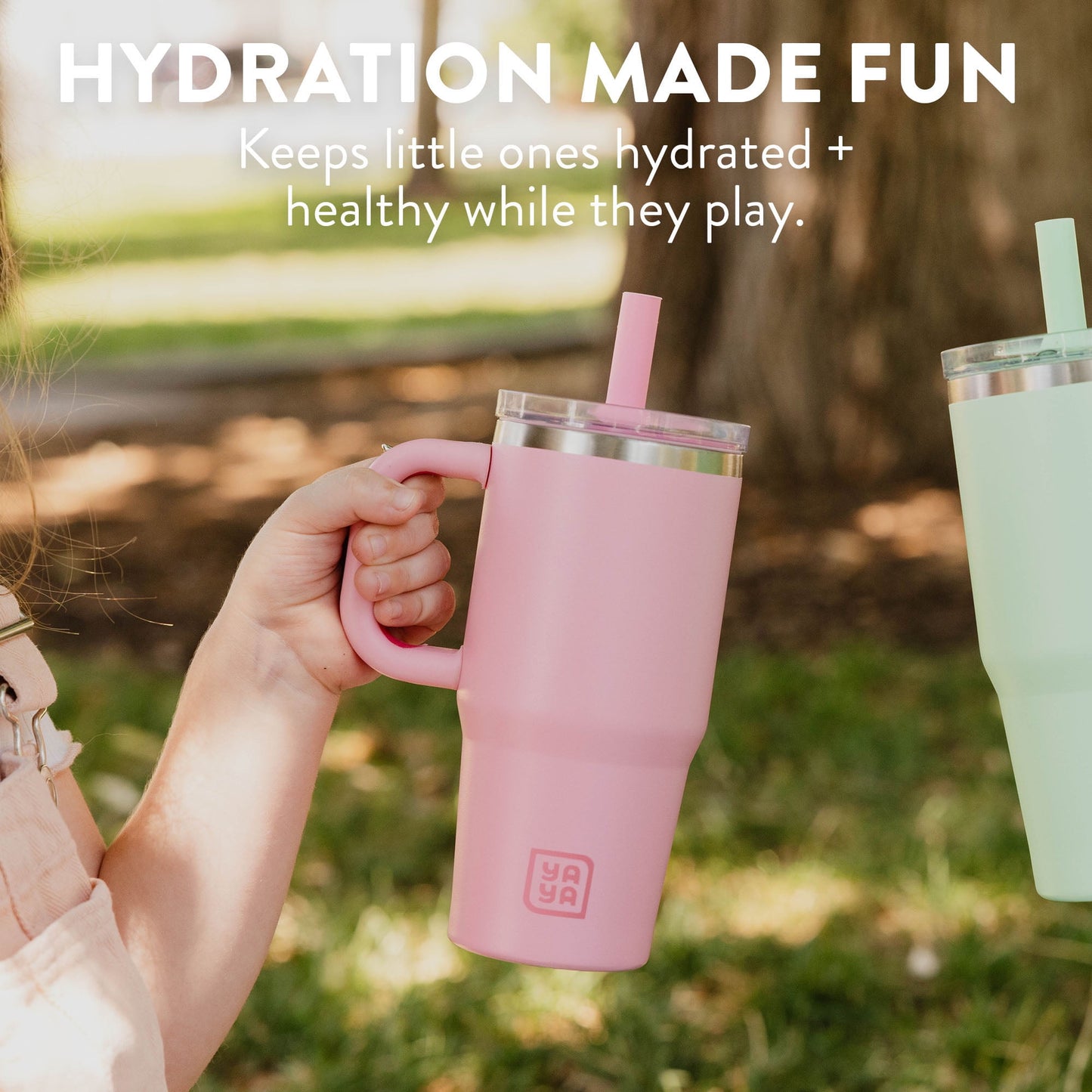 YAYA My First Travel Tumbler for Toddlers 3+ with Reusable Straw and Spill-Safe Lid, 12oz, Pink