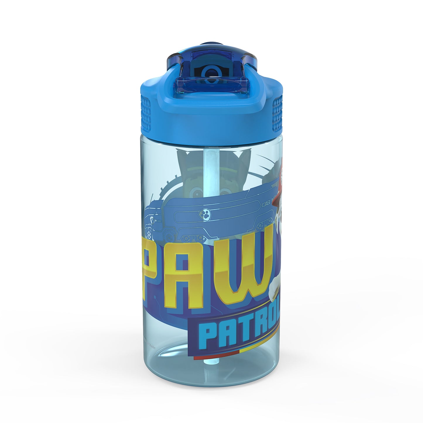 Zak Designs 16oz Paw Patrol Kids Straw Water Bottle, Durable Plastic Park Bottle with Easy-Open Locking Spout Cover for Travel, Built in Carry Handle
